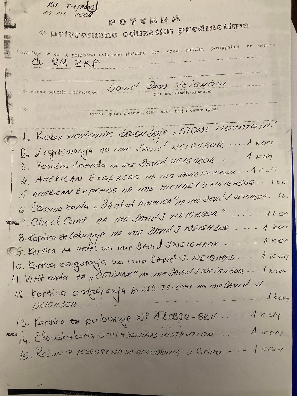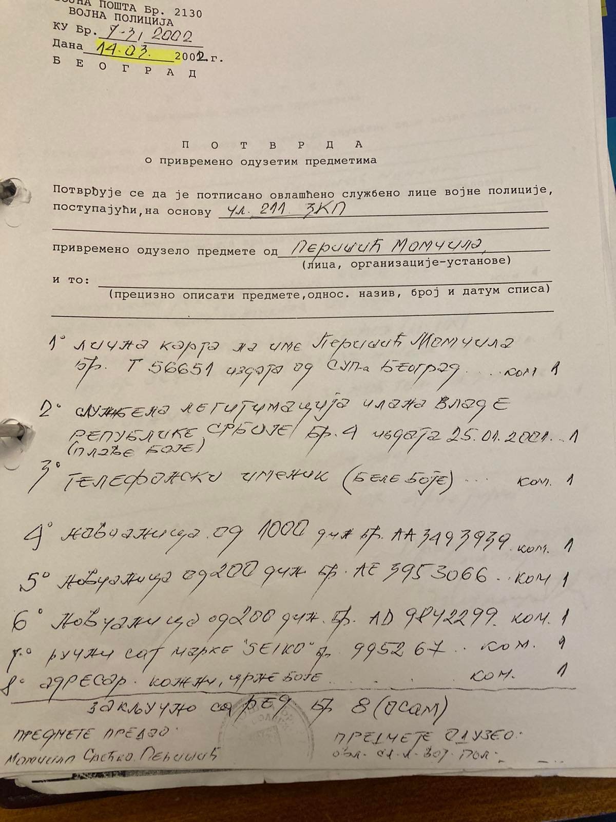 Potvrde o oduzetim predmetima