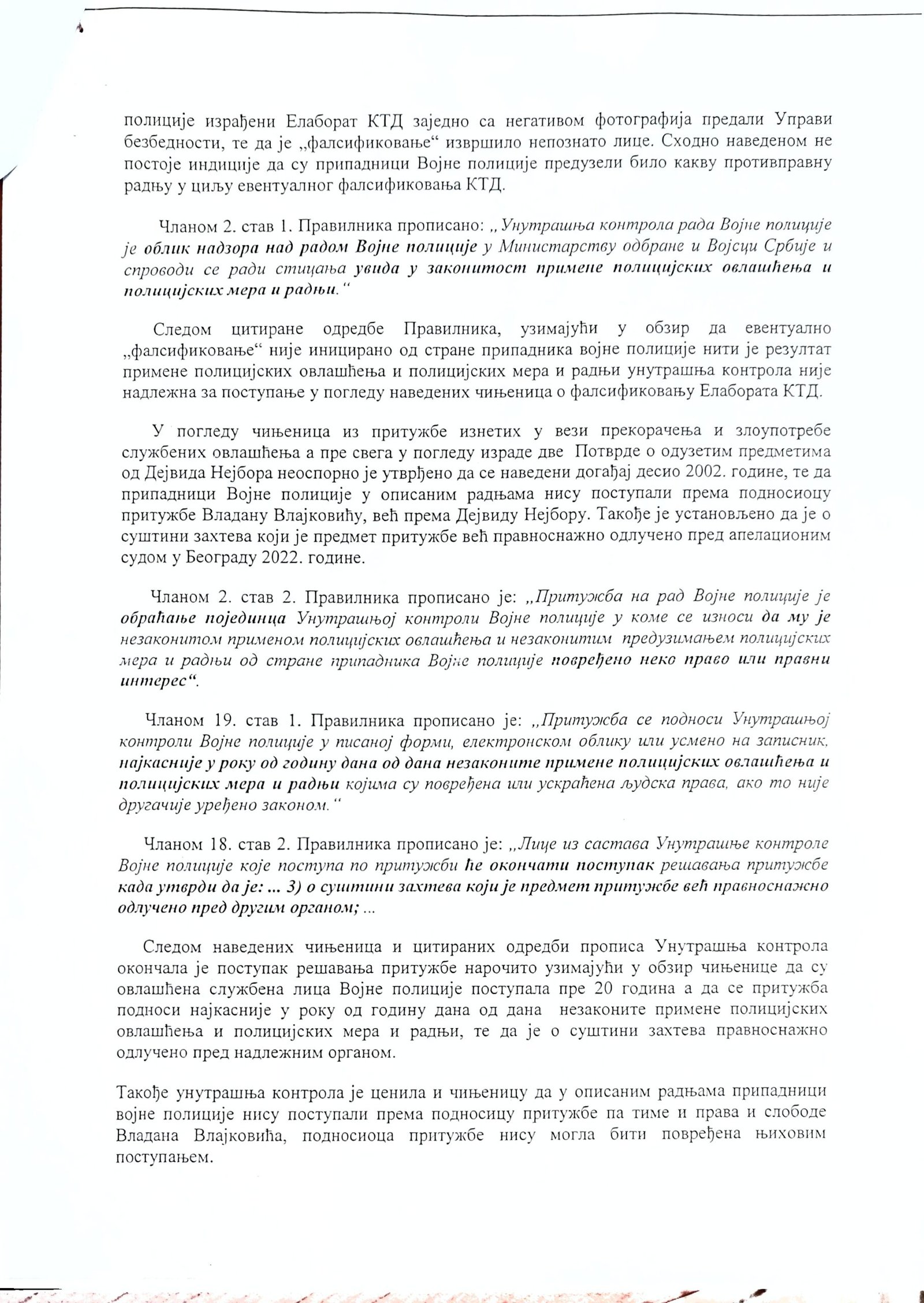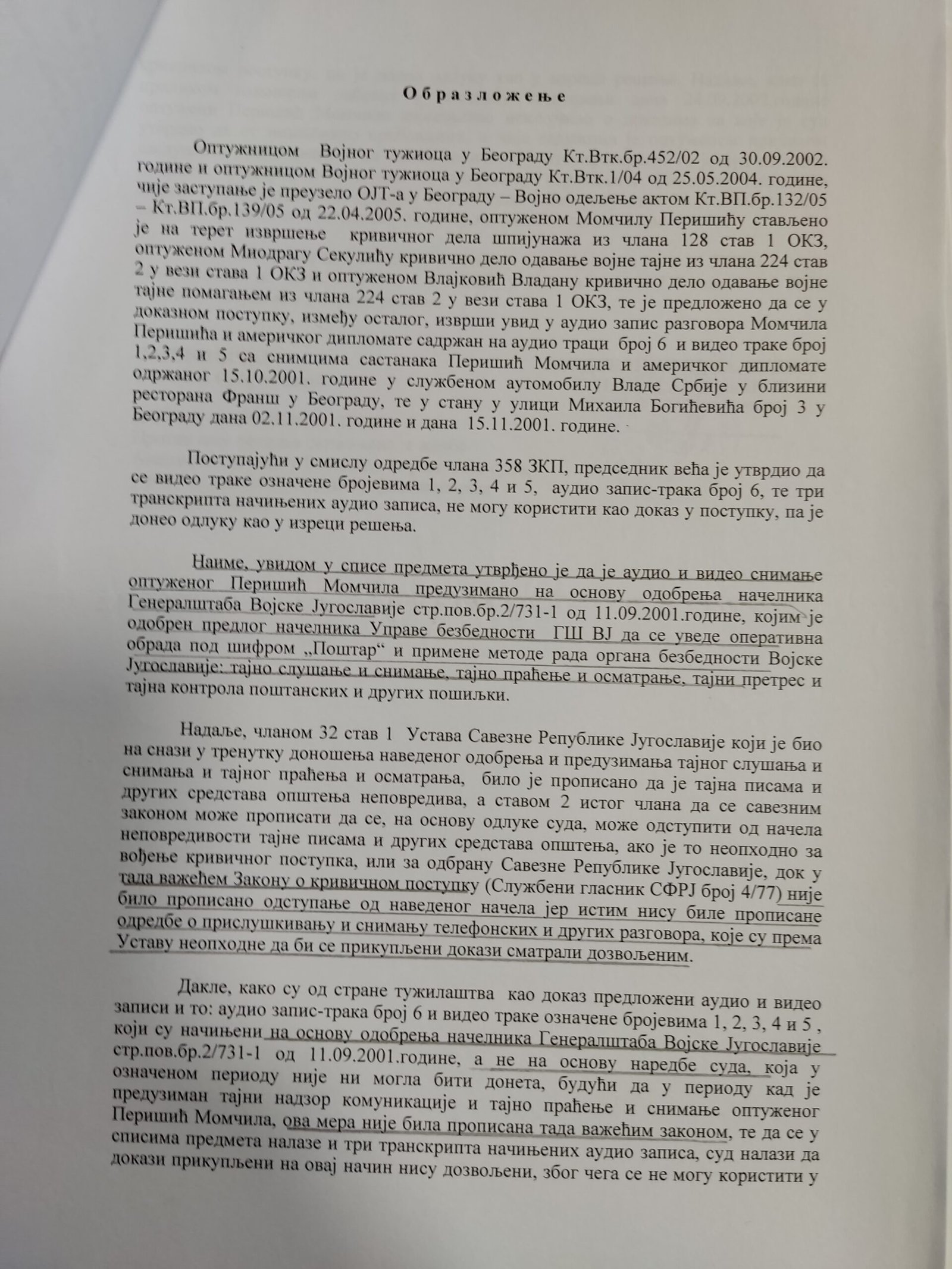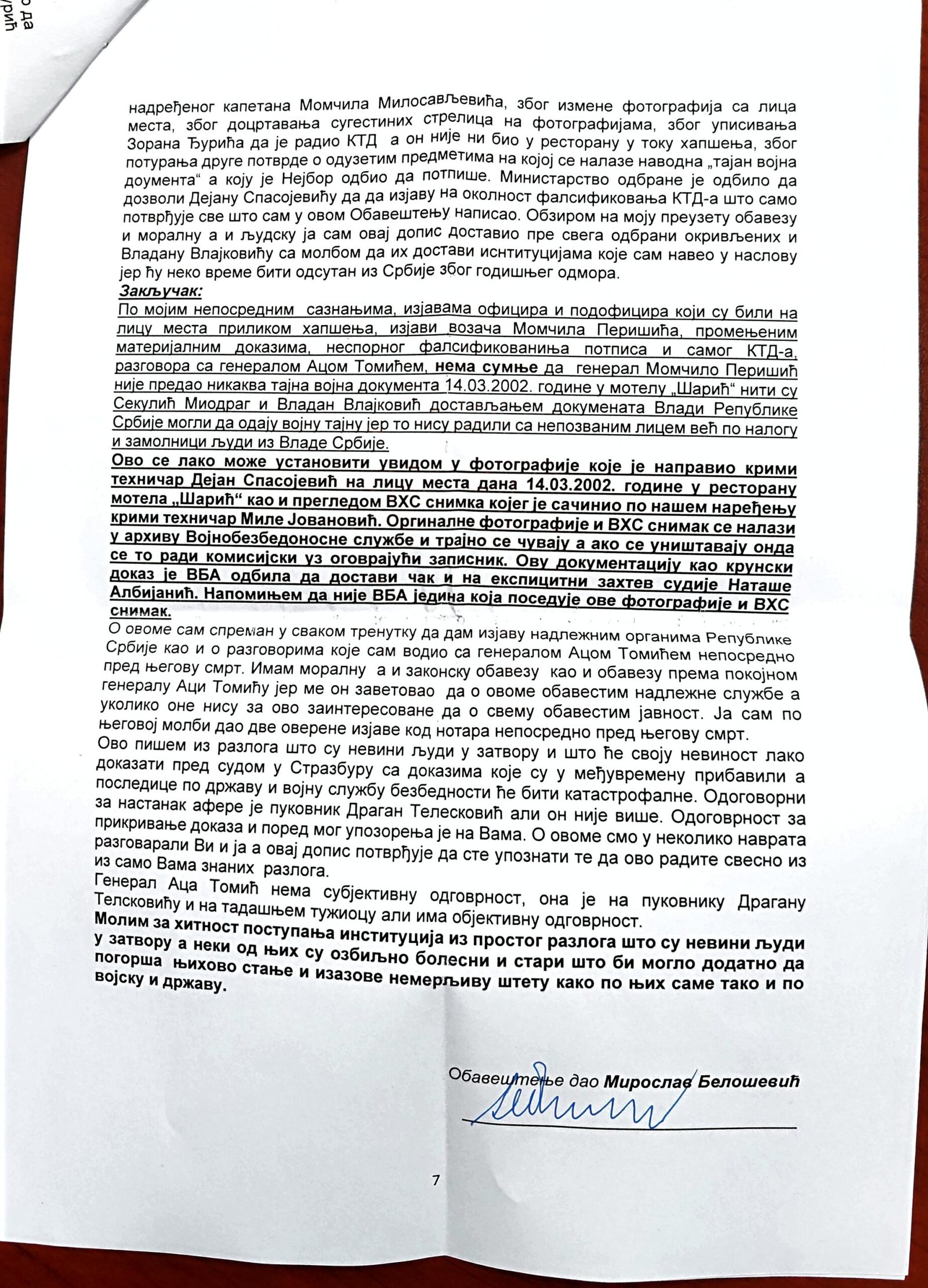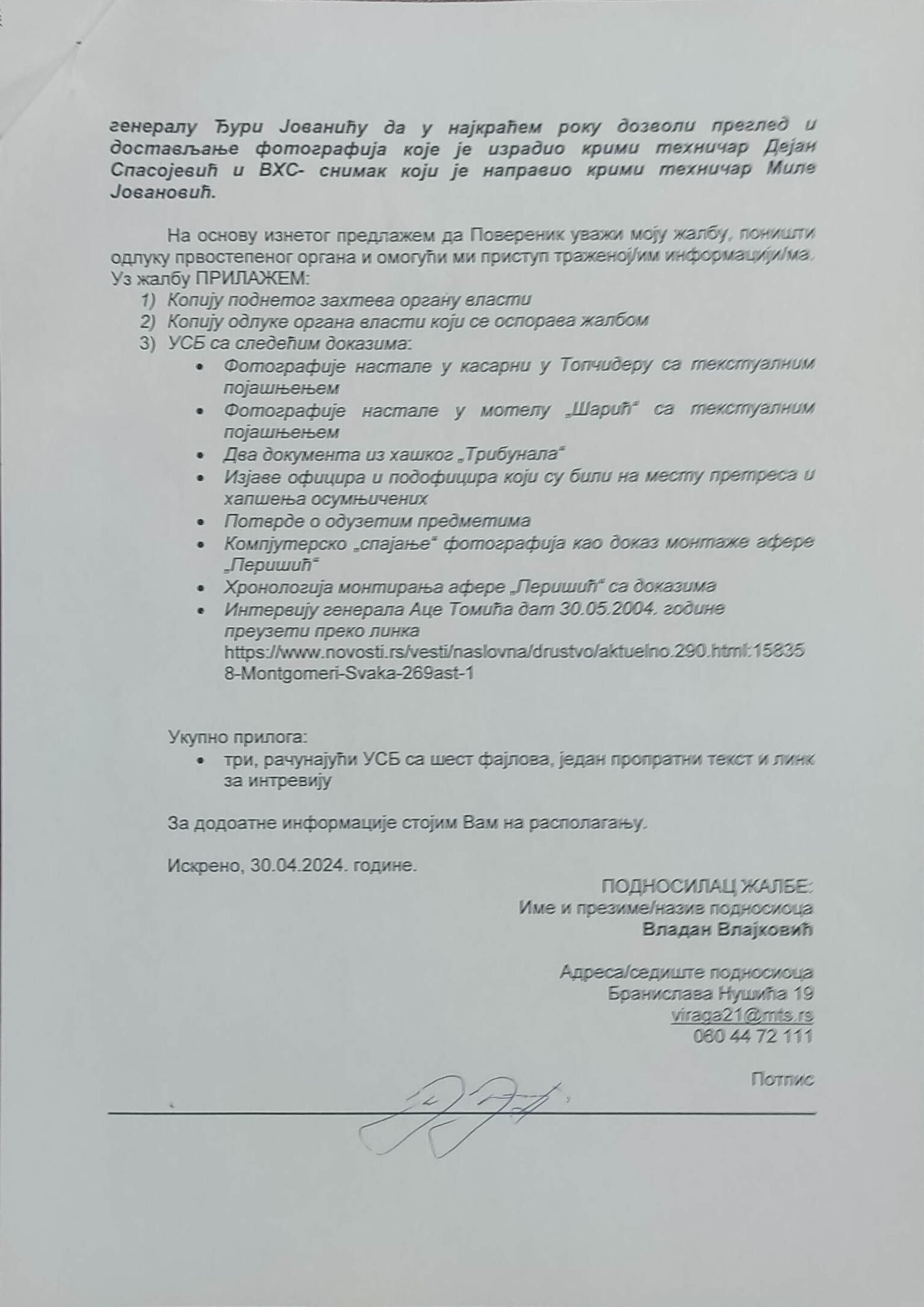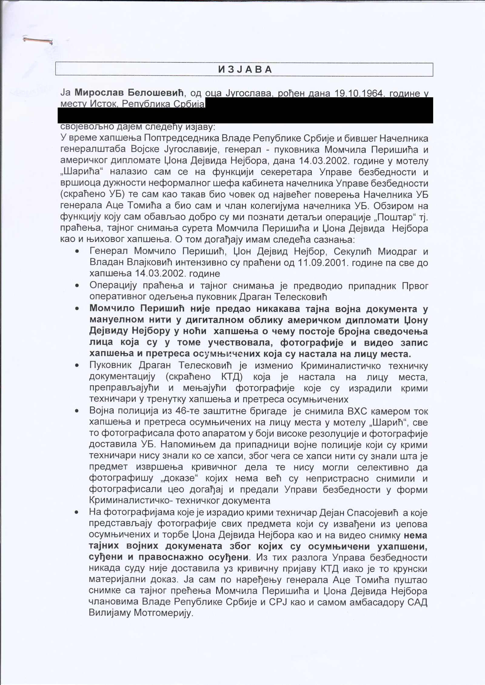 Veštačenje potpisa kapetana Momčila Milosavljevića na kriminalističko-tehničkom dokumentu