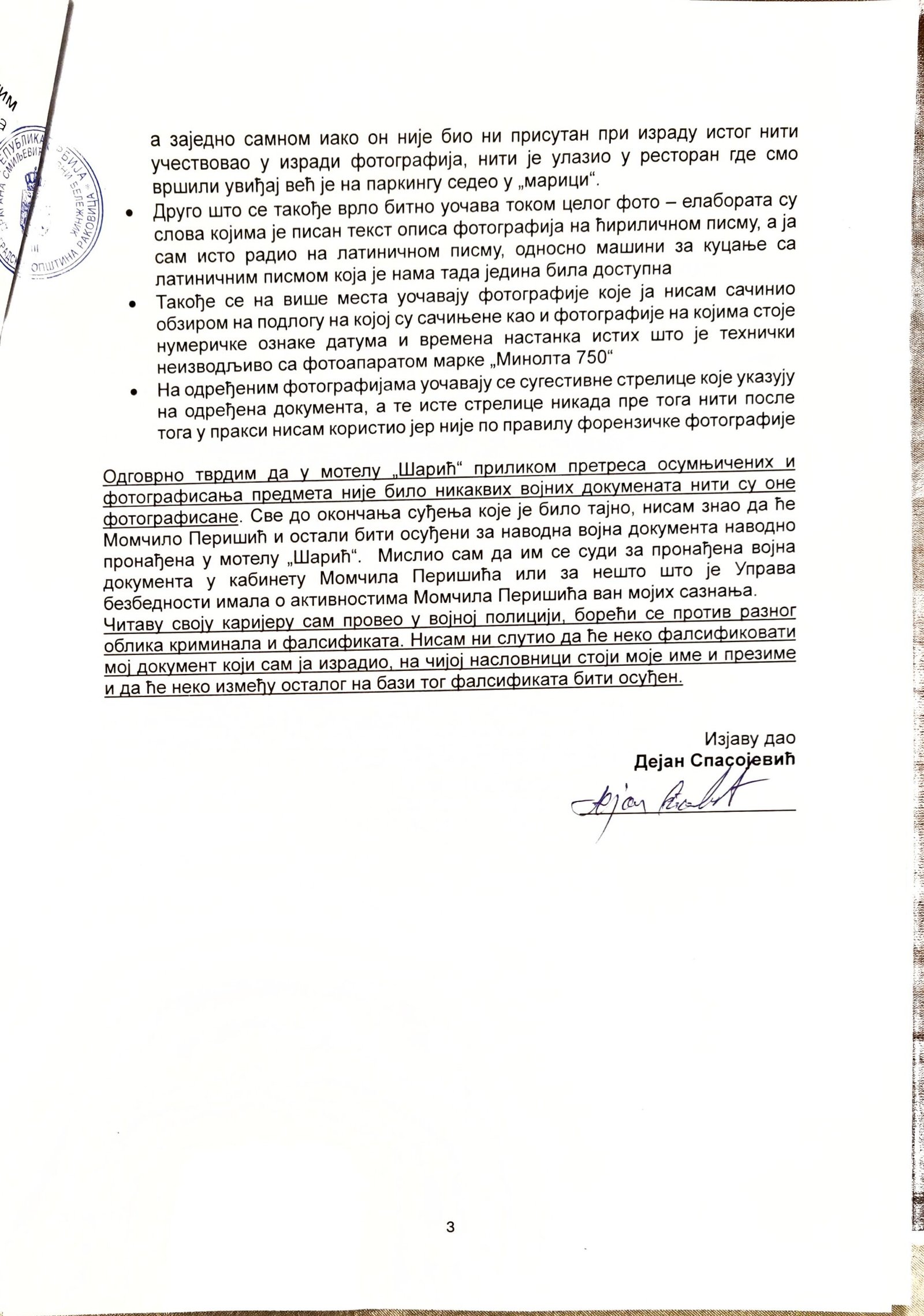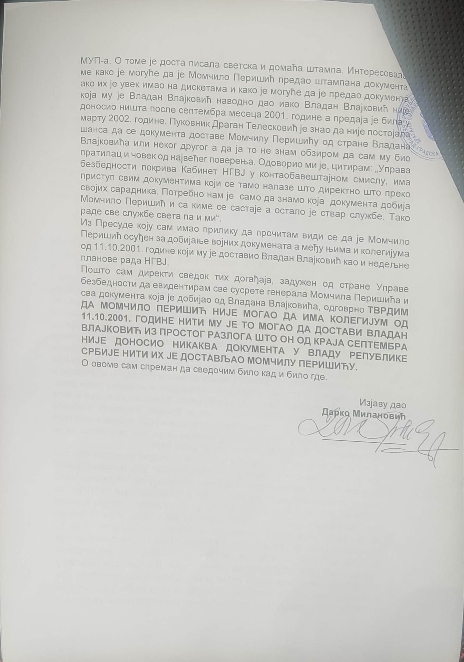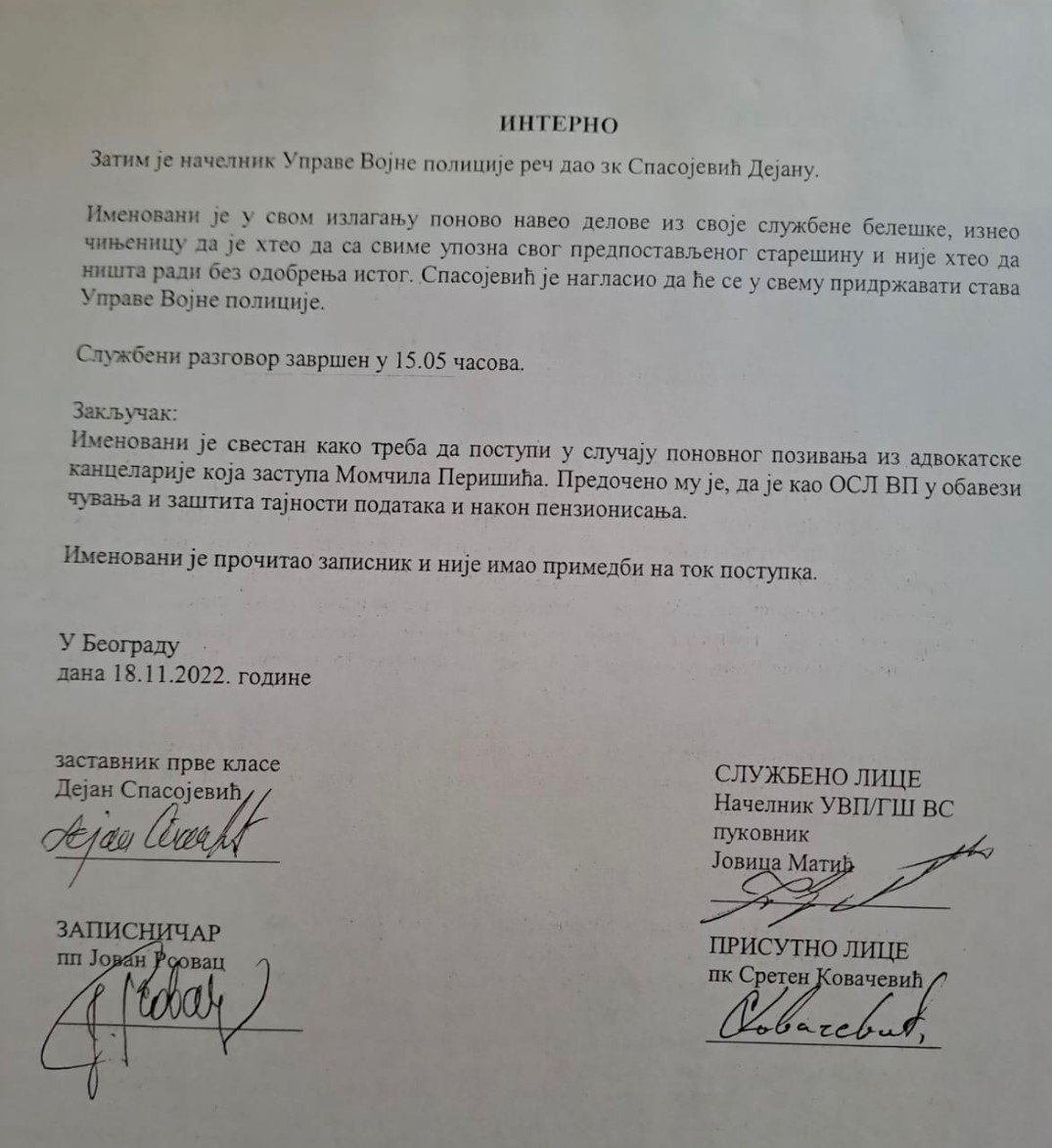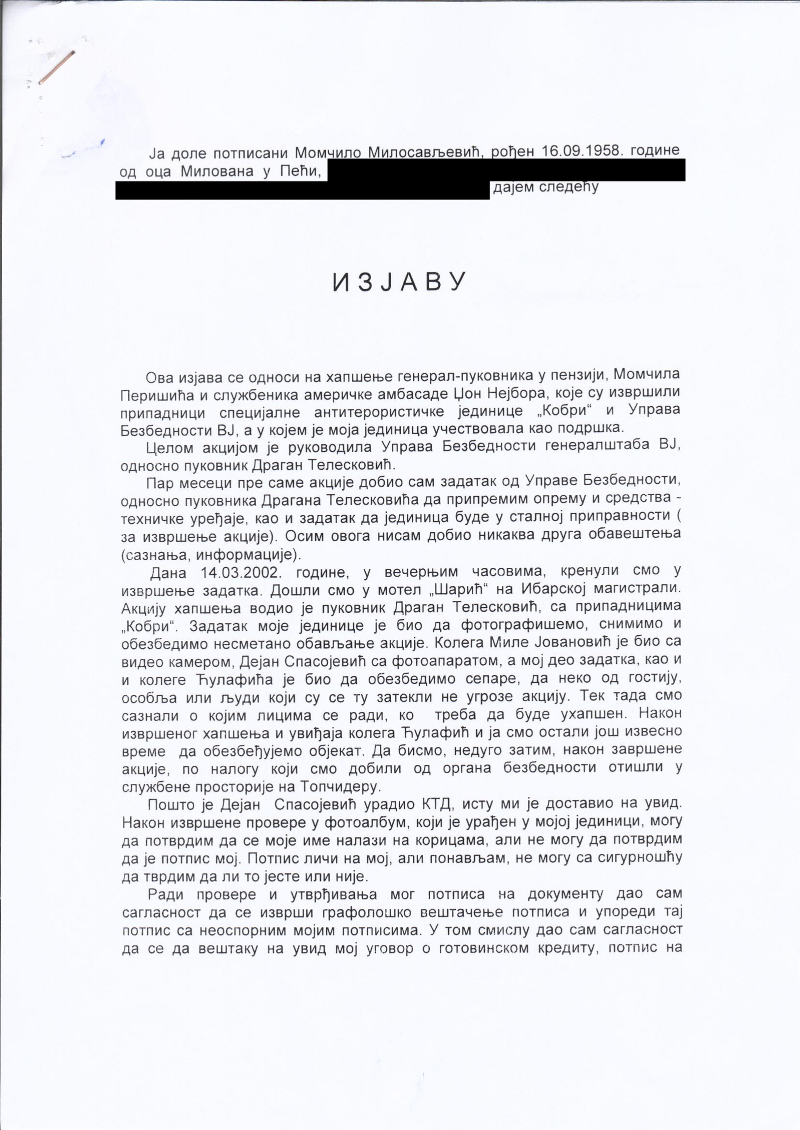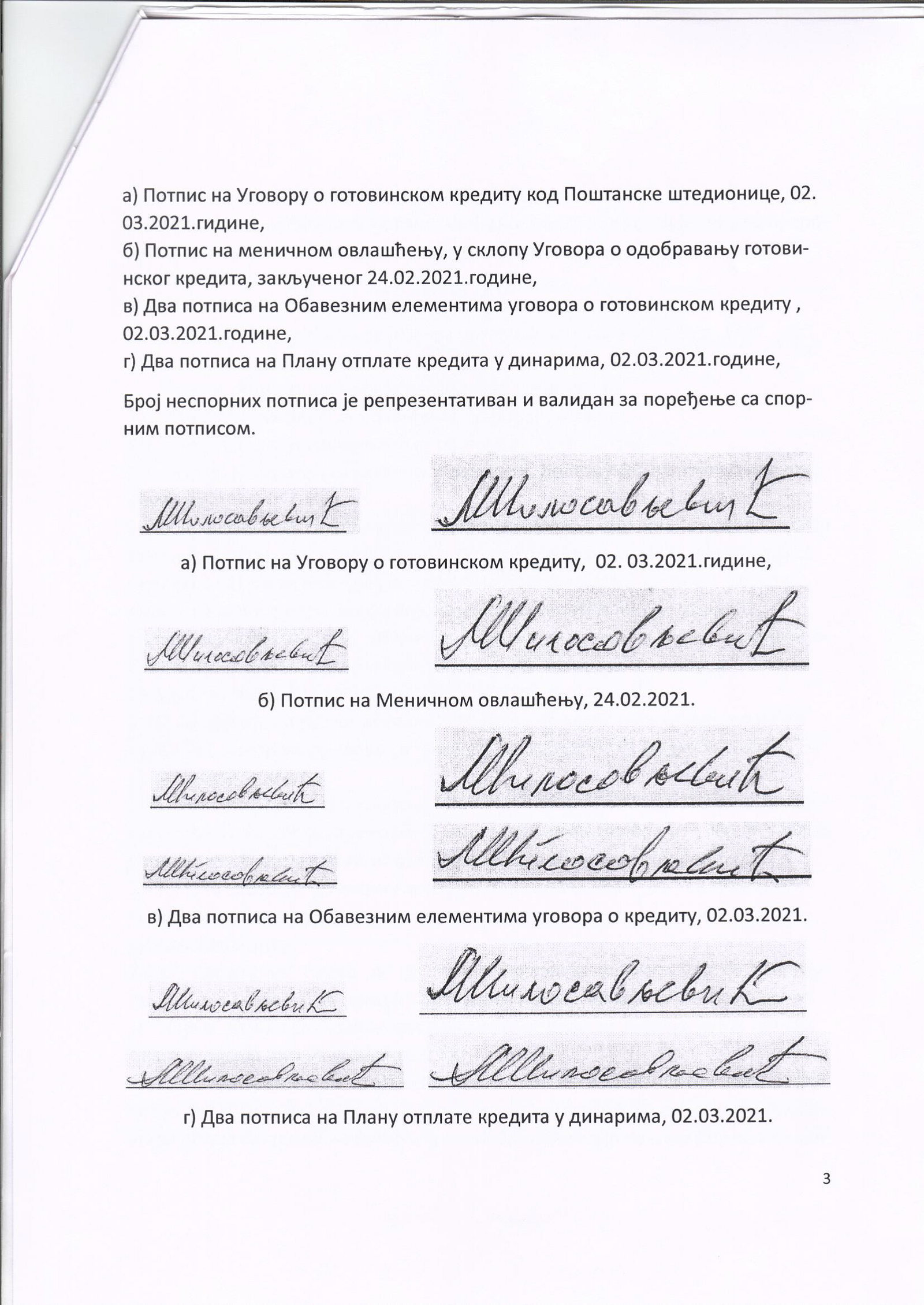 Veštačenje potpisa kapetana Momčila Milosavljevića