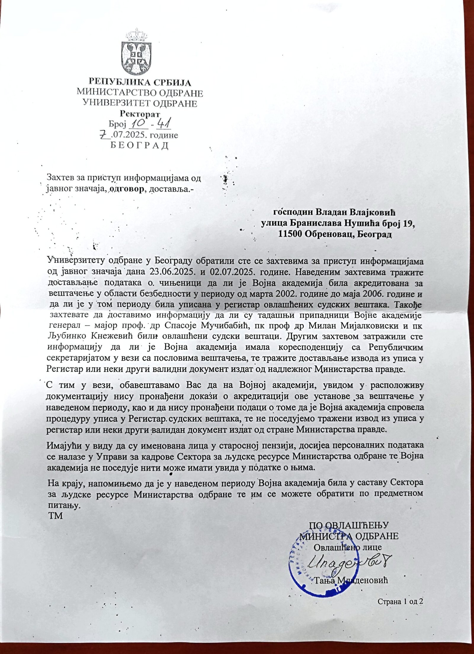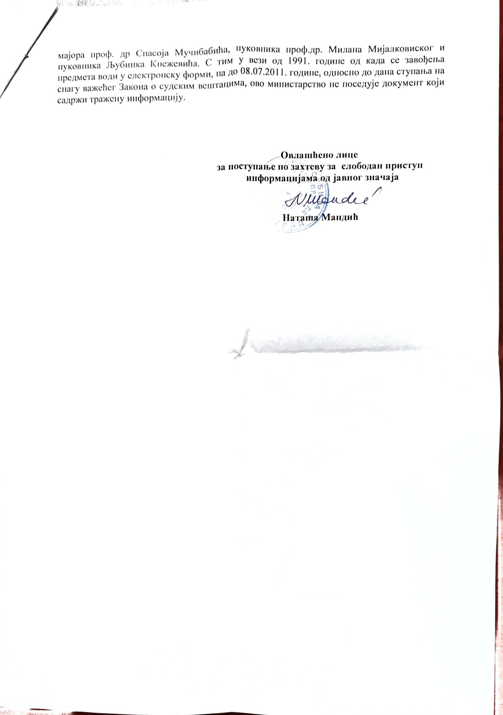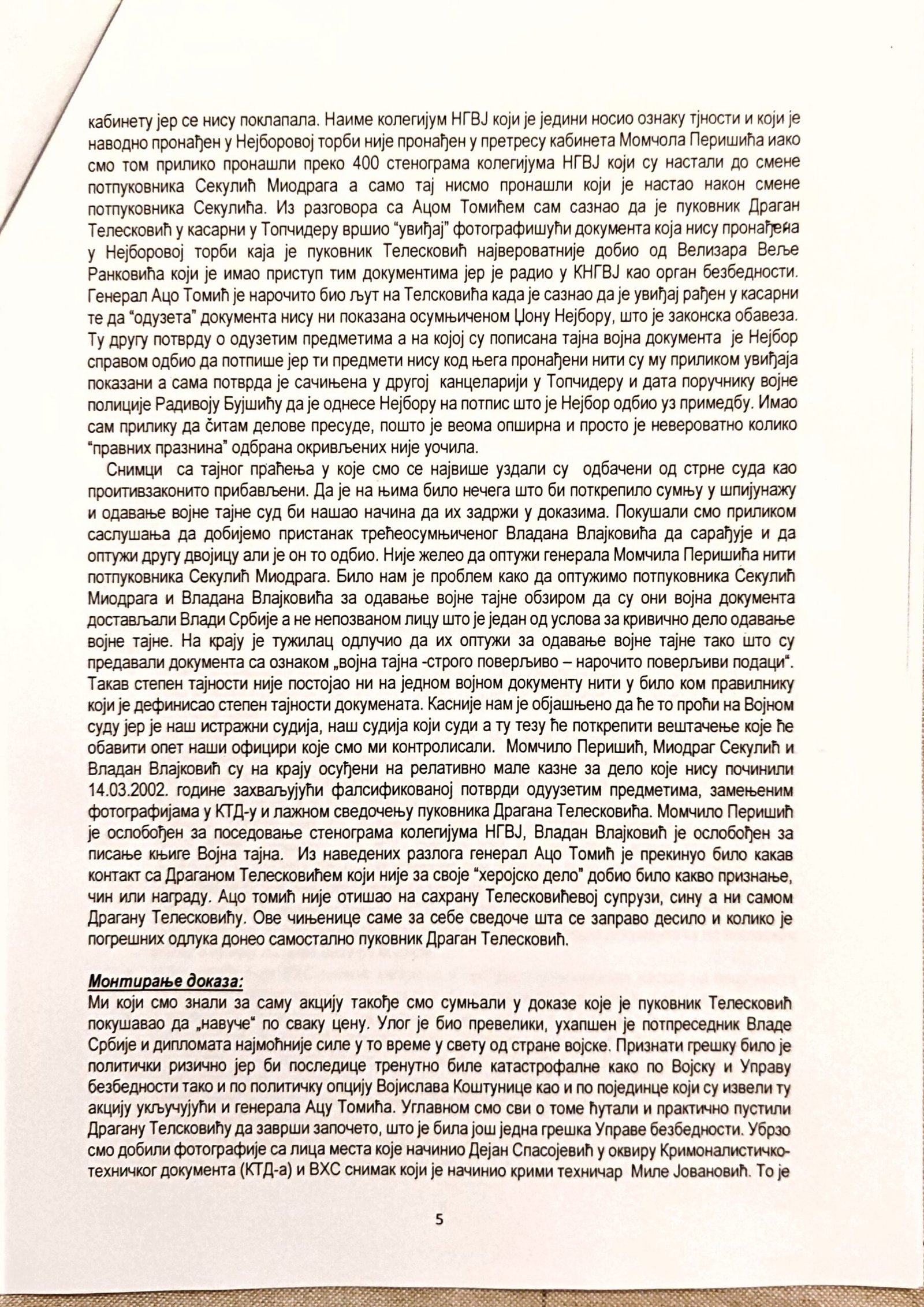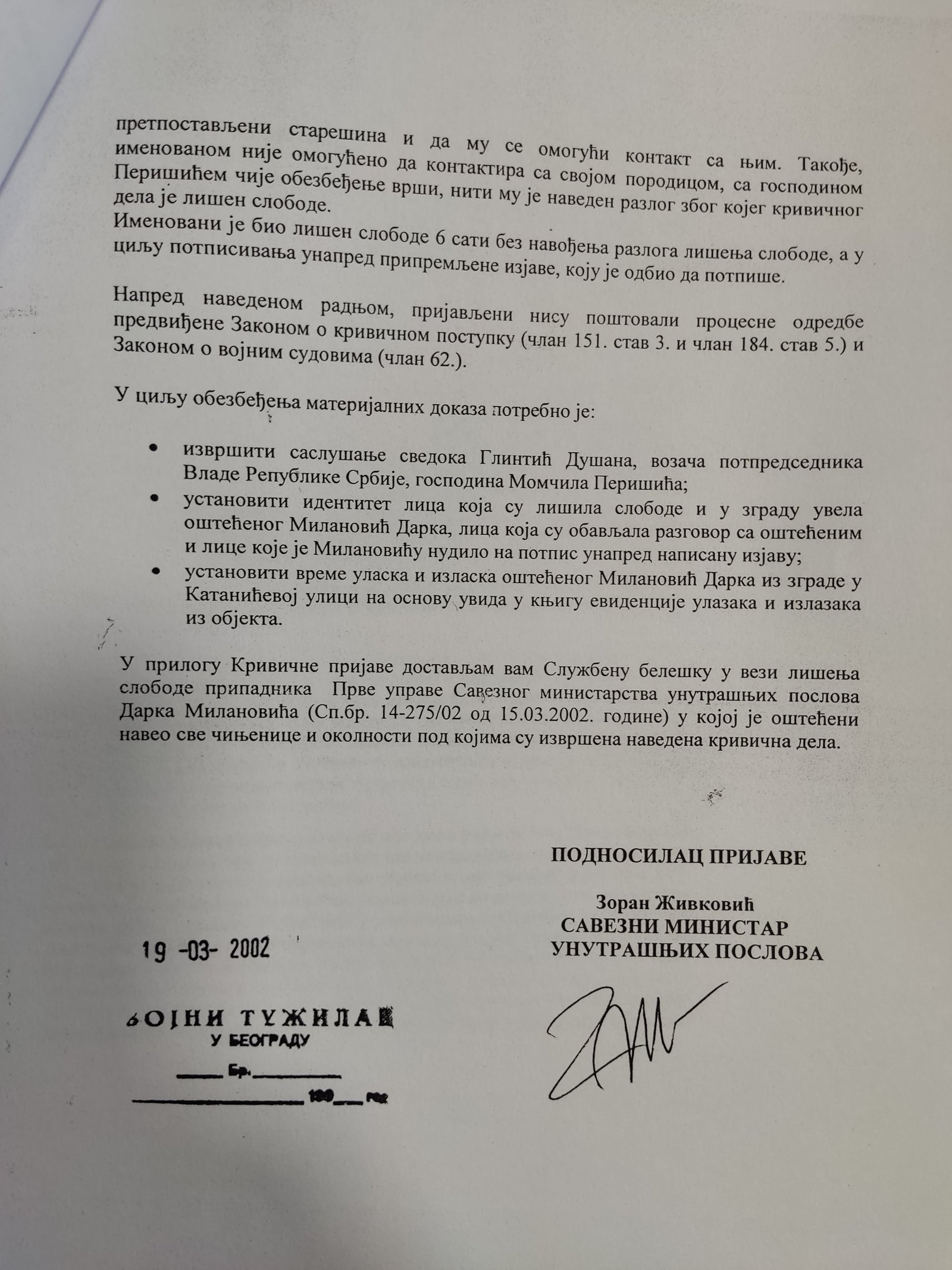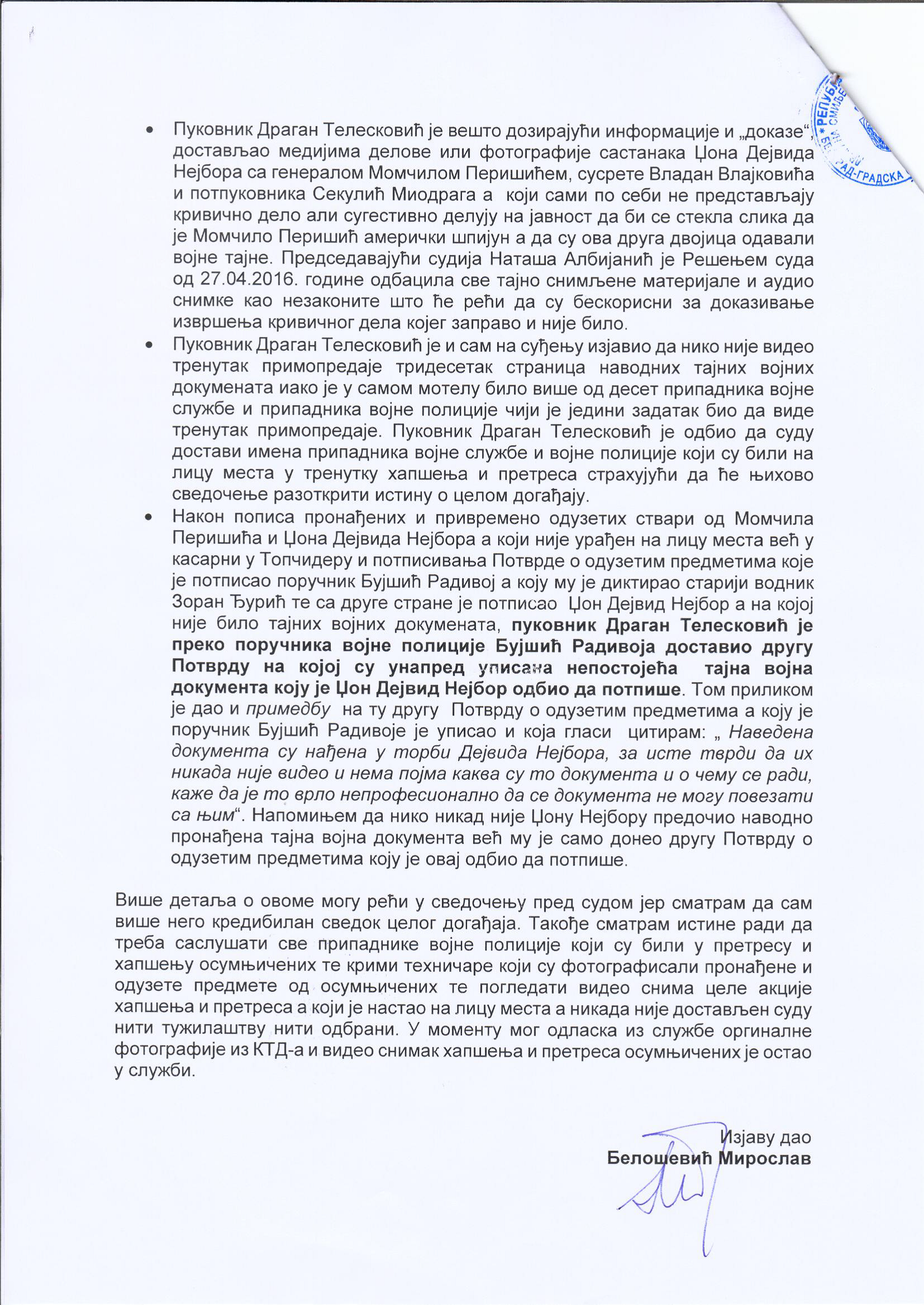 Veštačenje potpisa kapetana Momčila Milosavljevića
