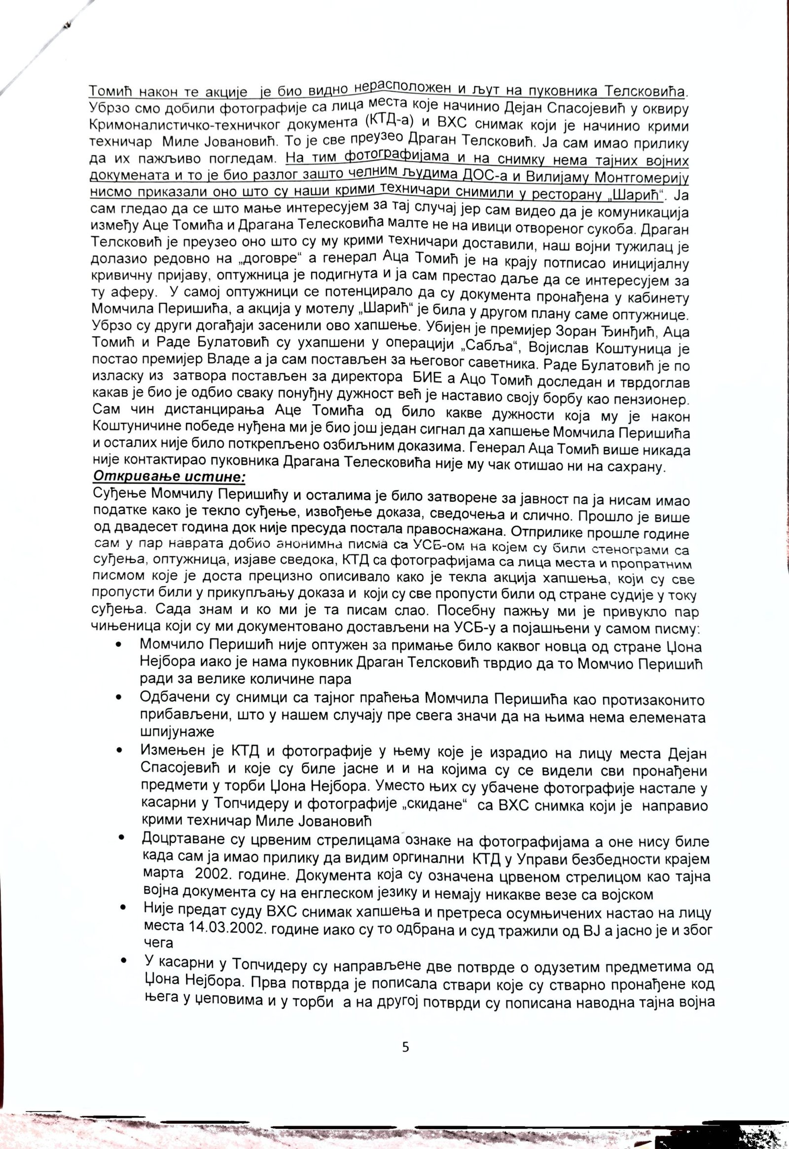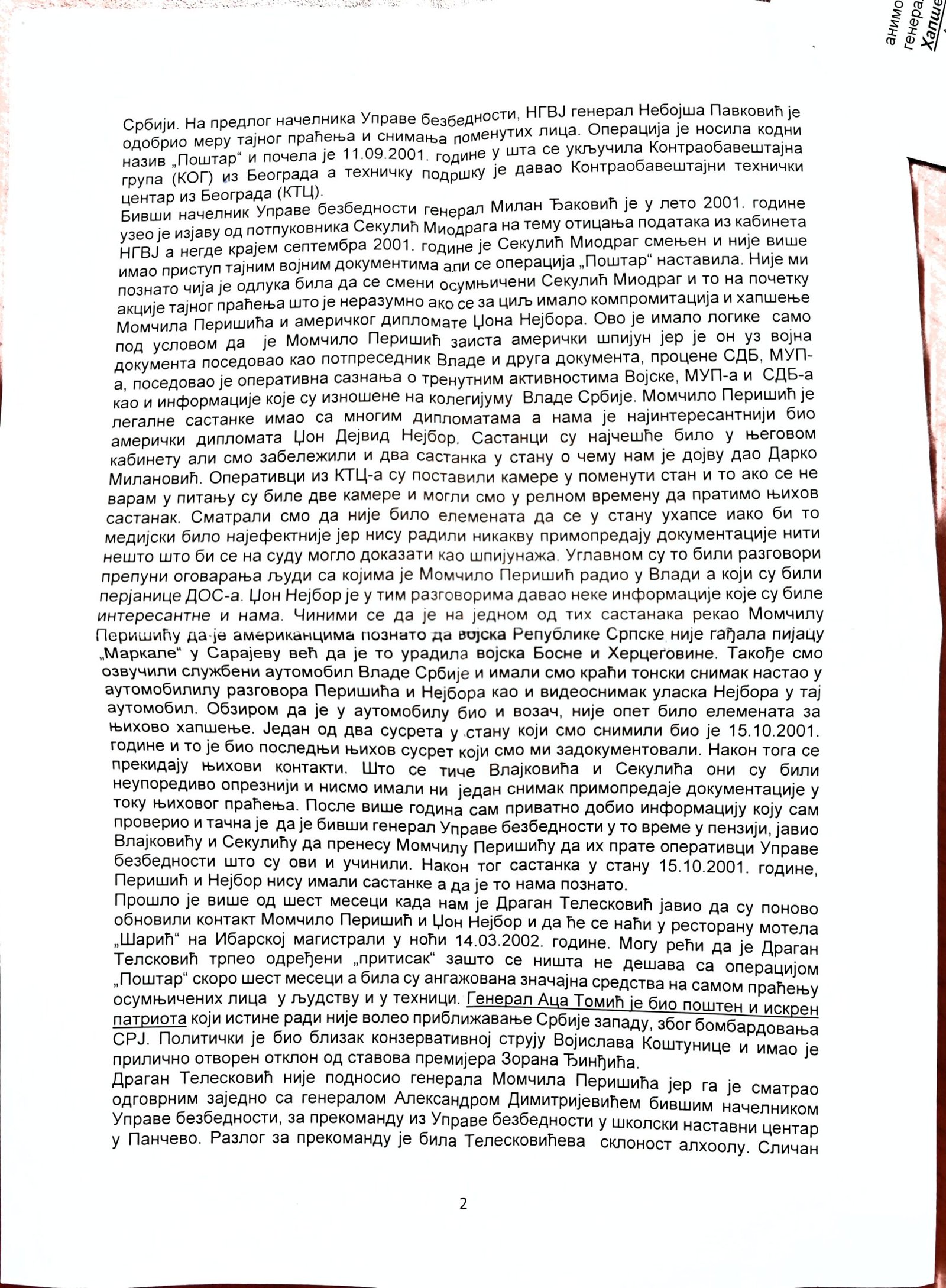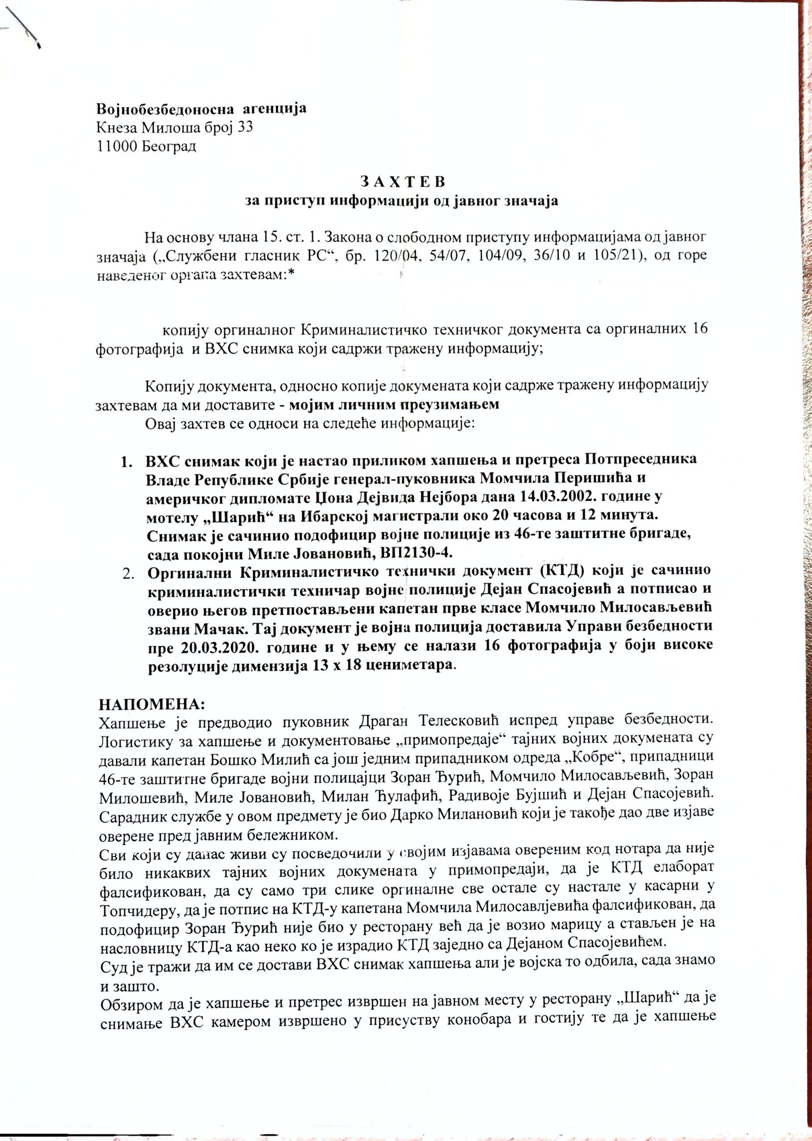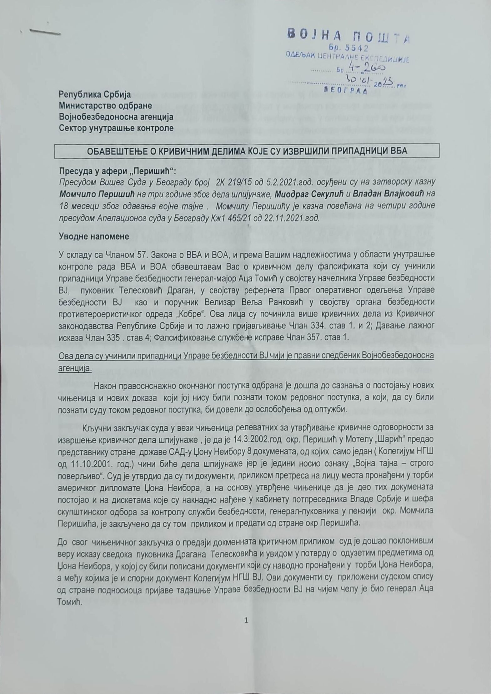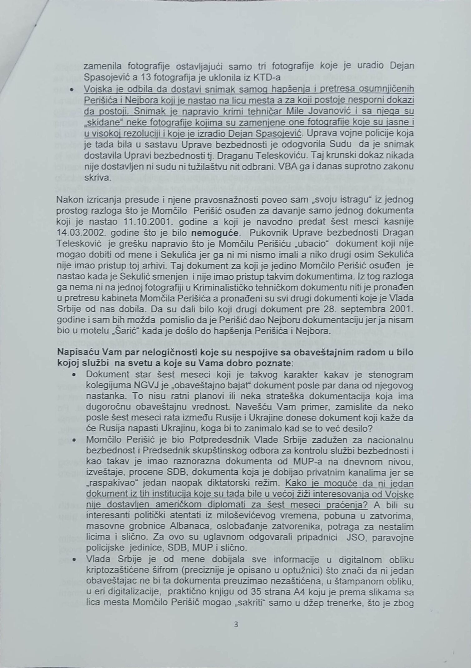 - Perisic pismo Jimu presretnuta depesa
