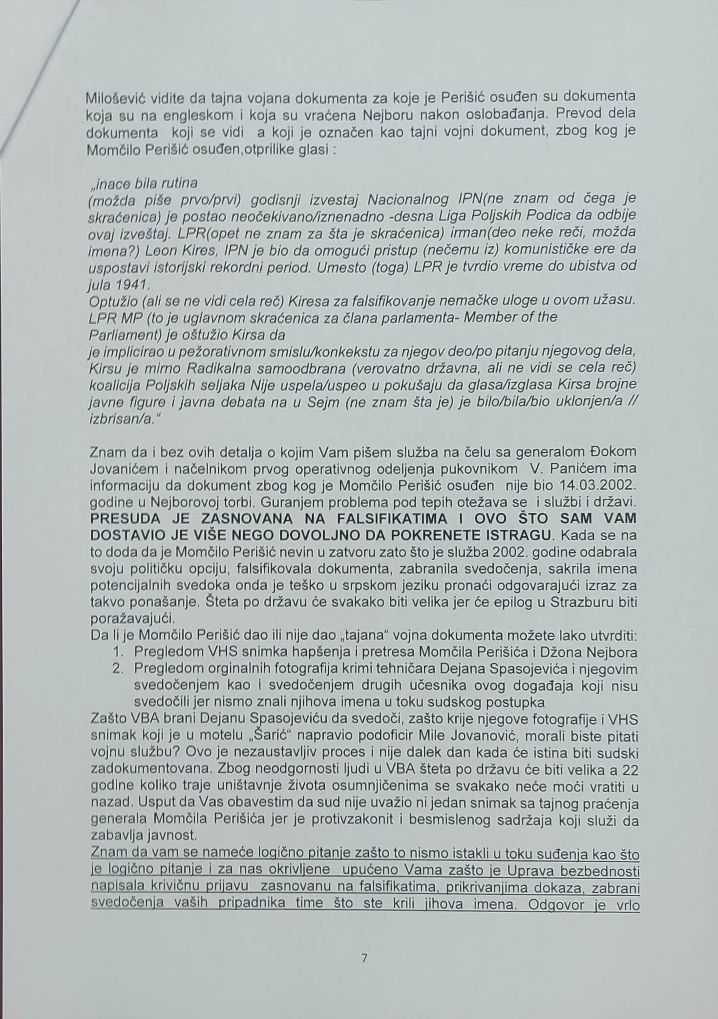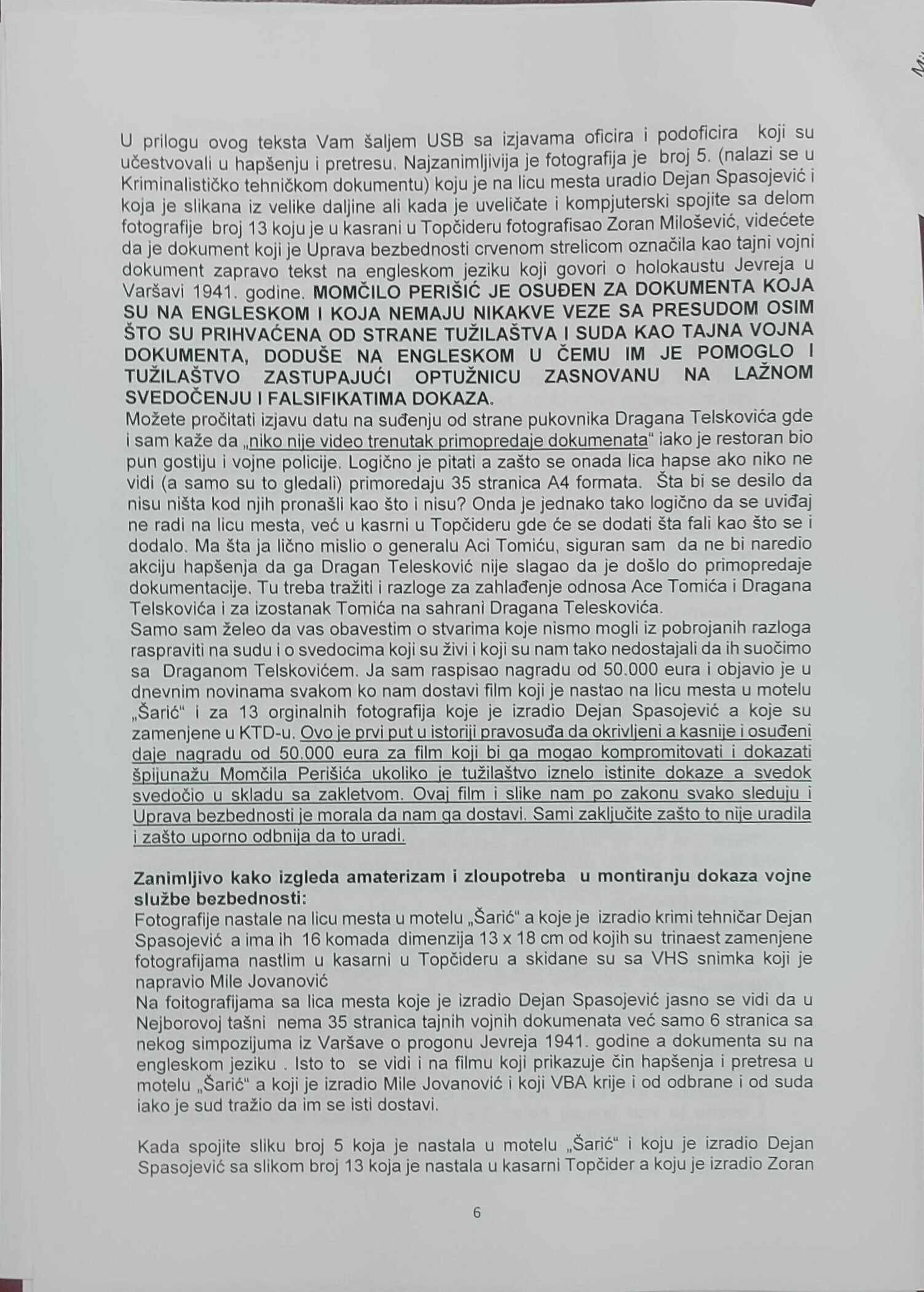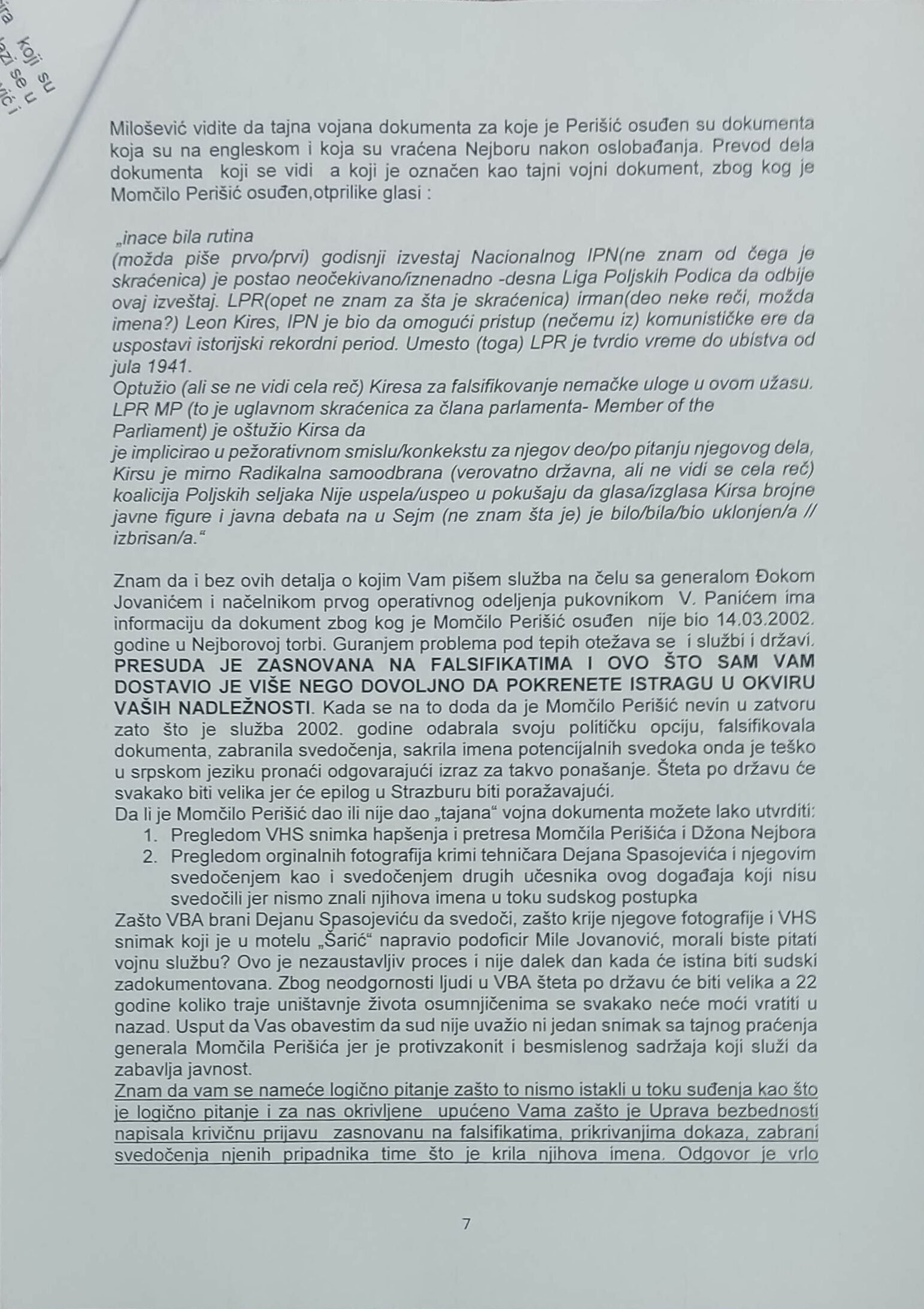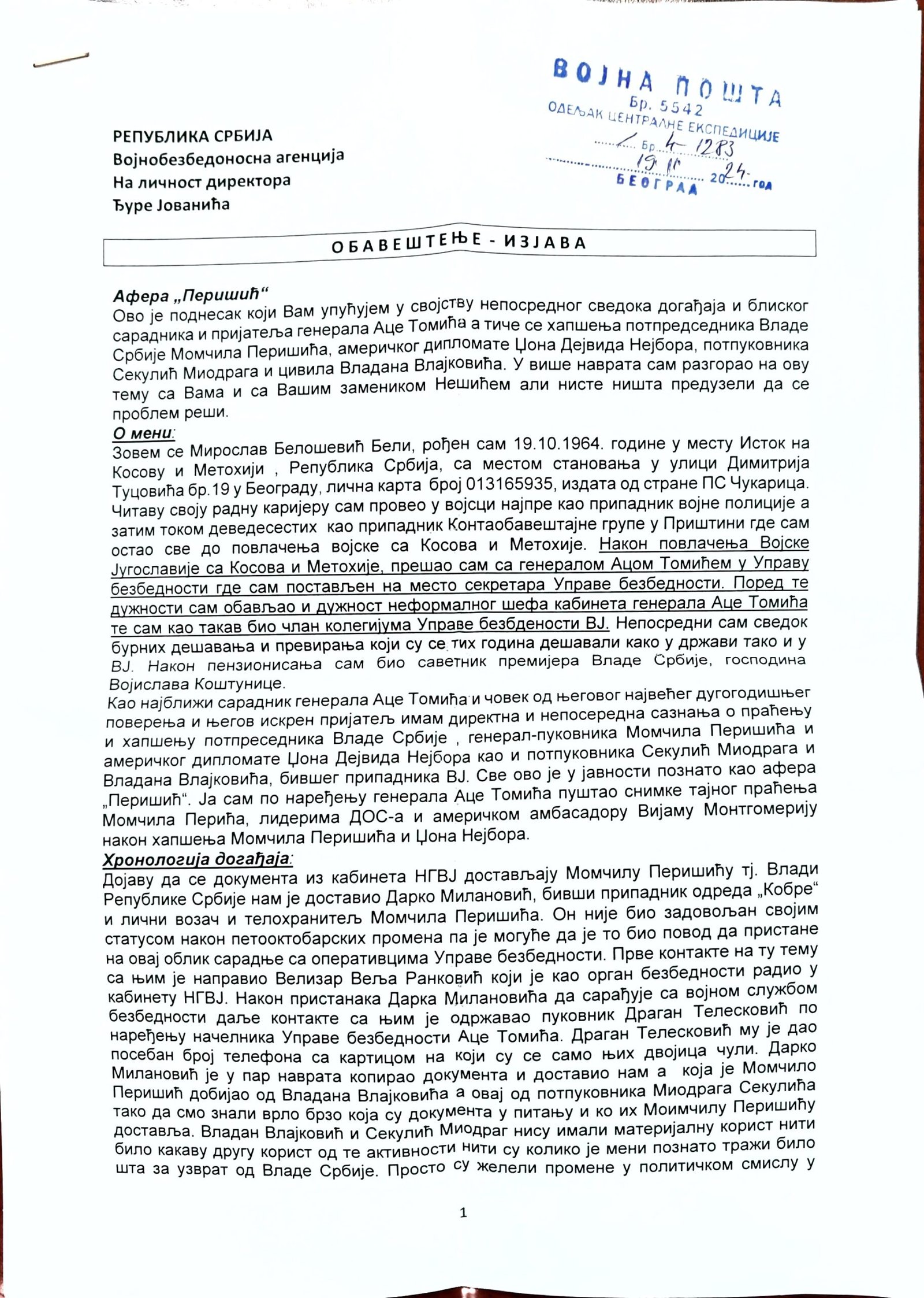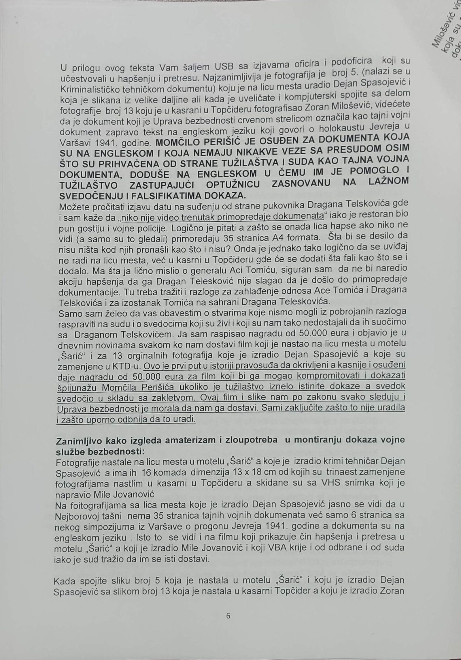 - Perisic pismo Jimu presretnuta depesa