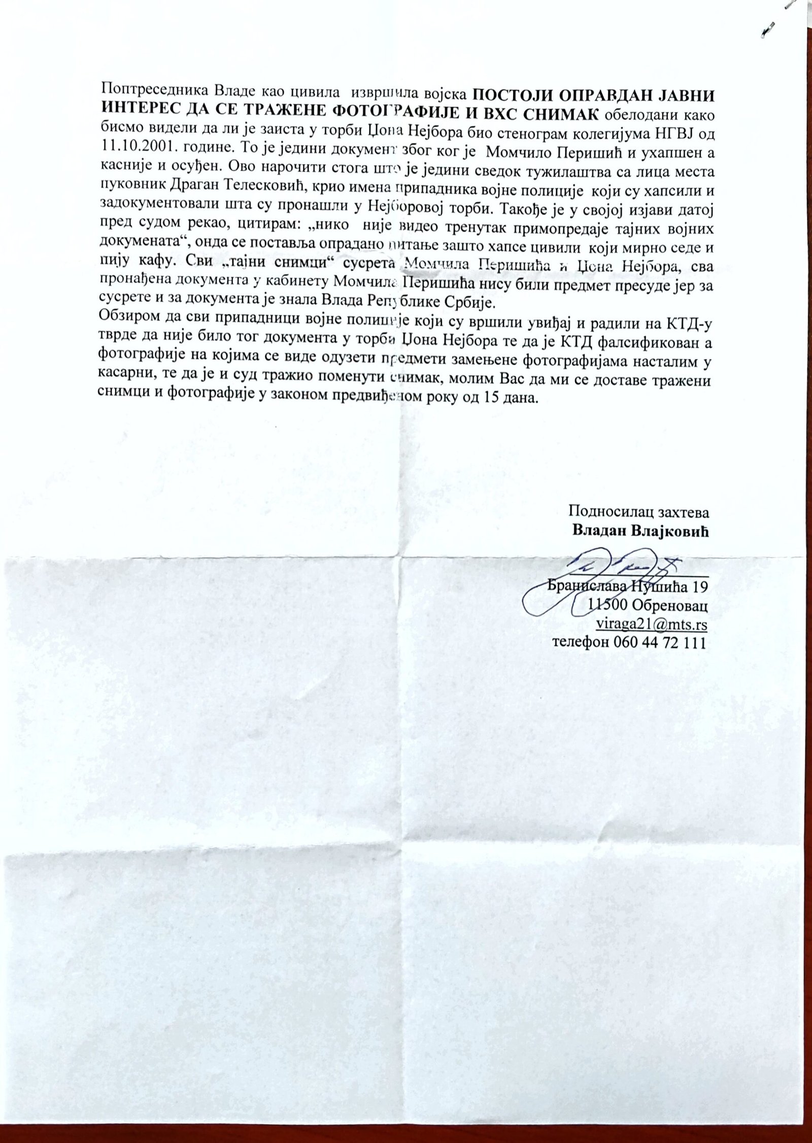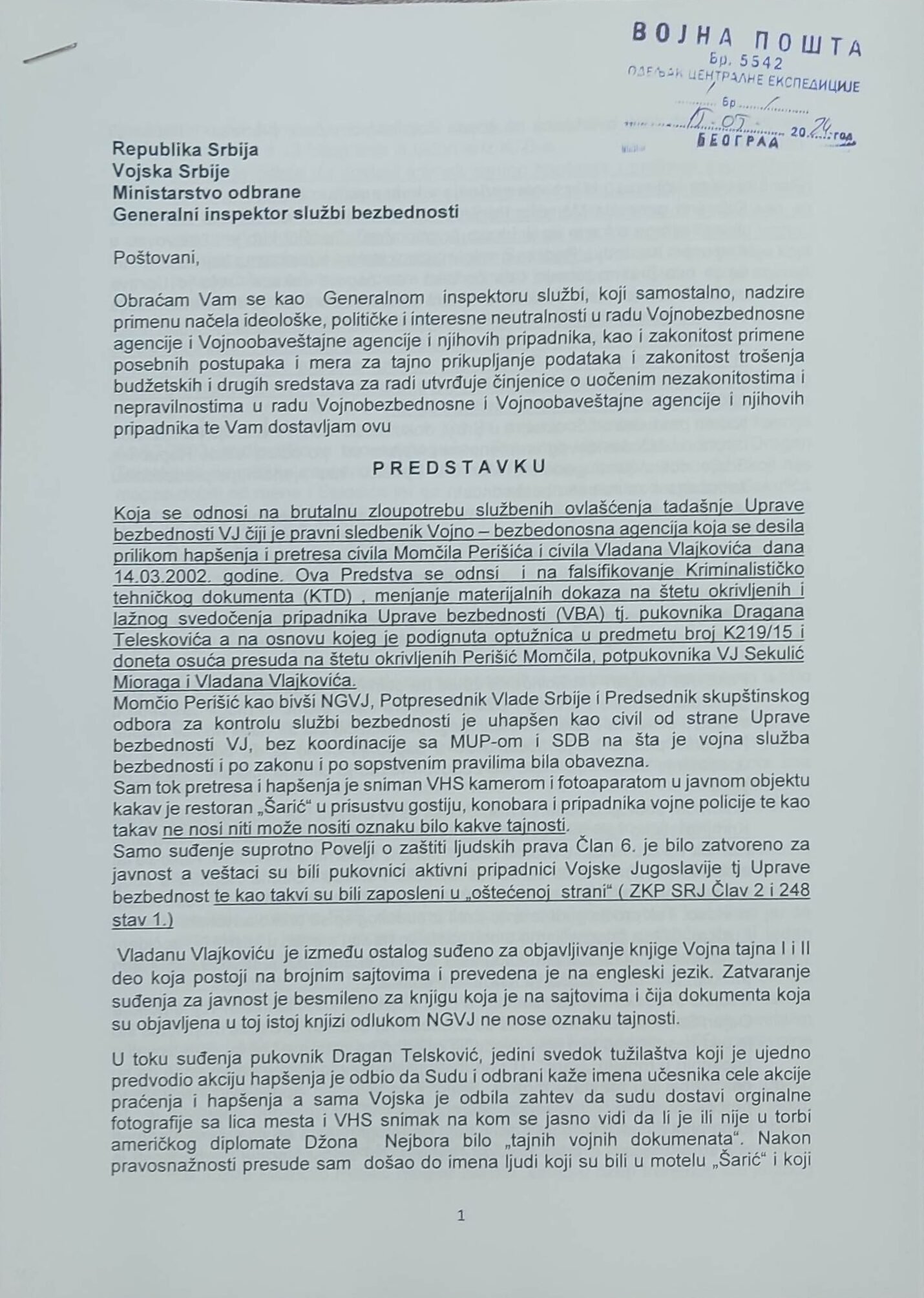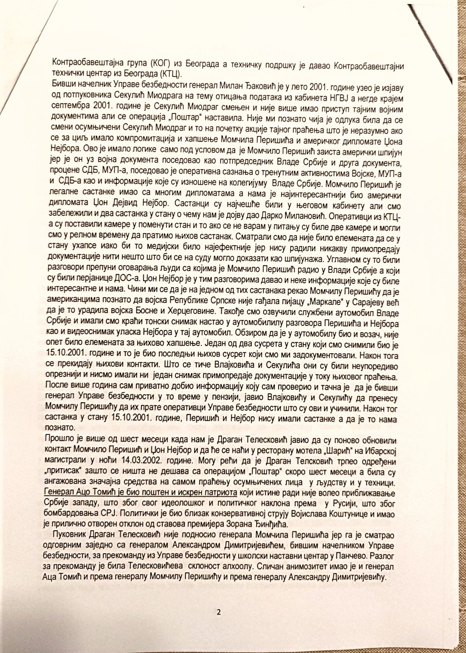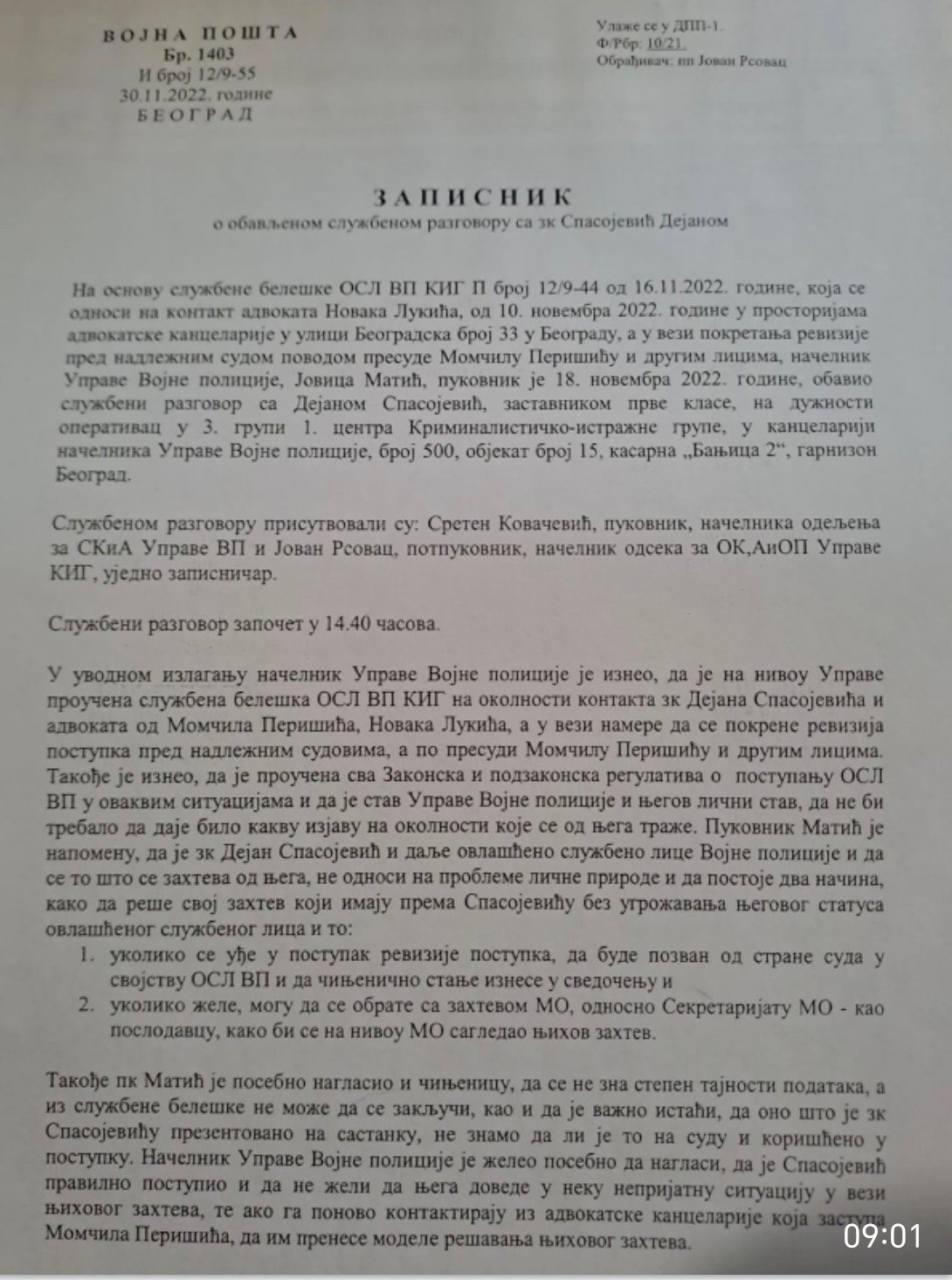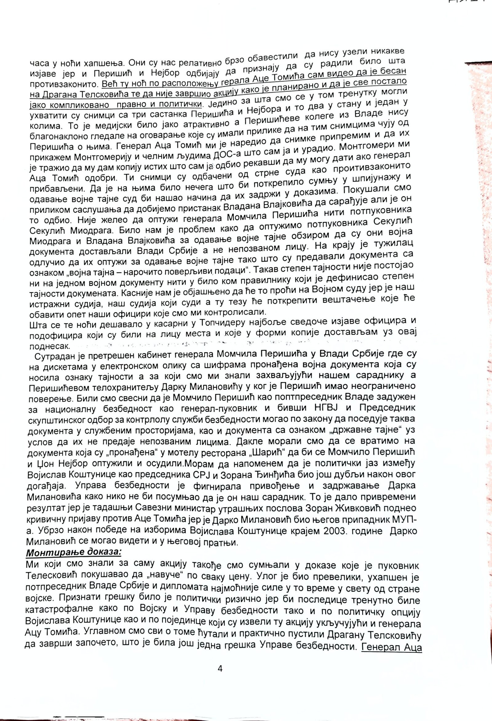 - Perisic pismo Jimu presretnuta depesa