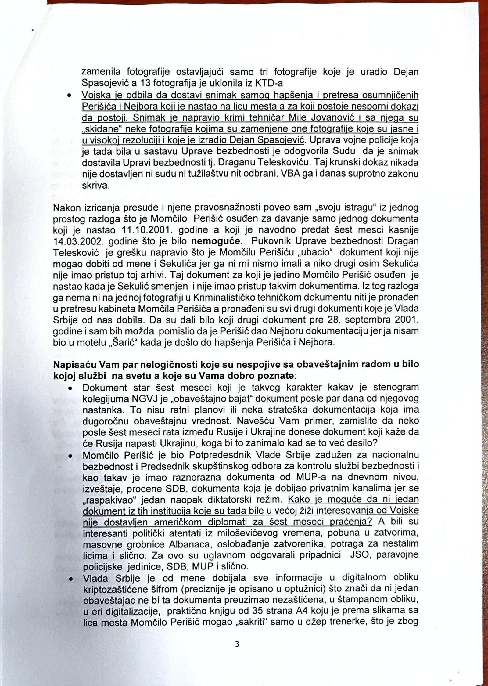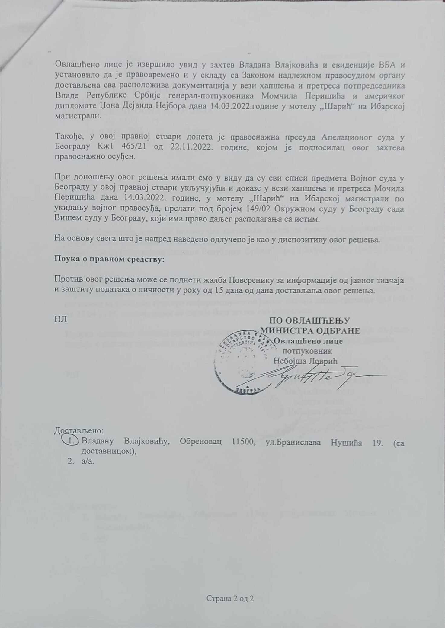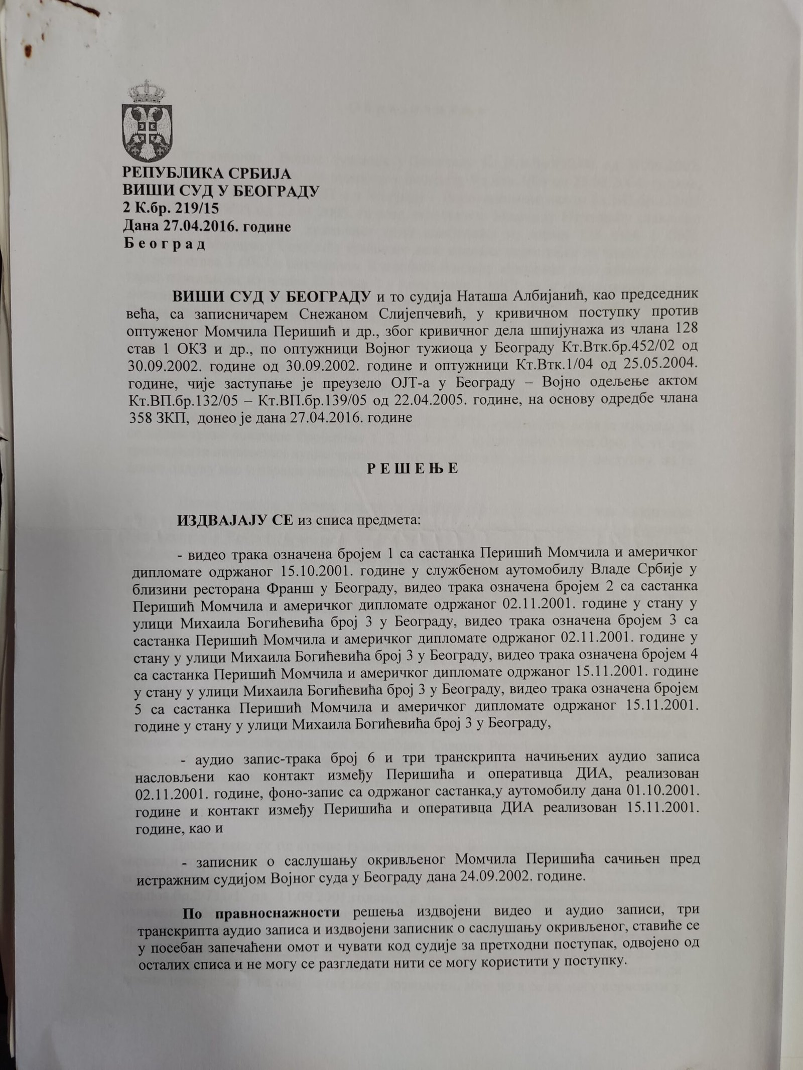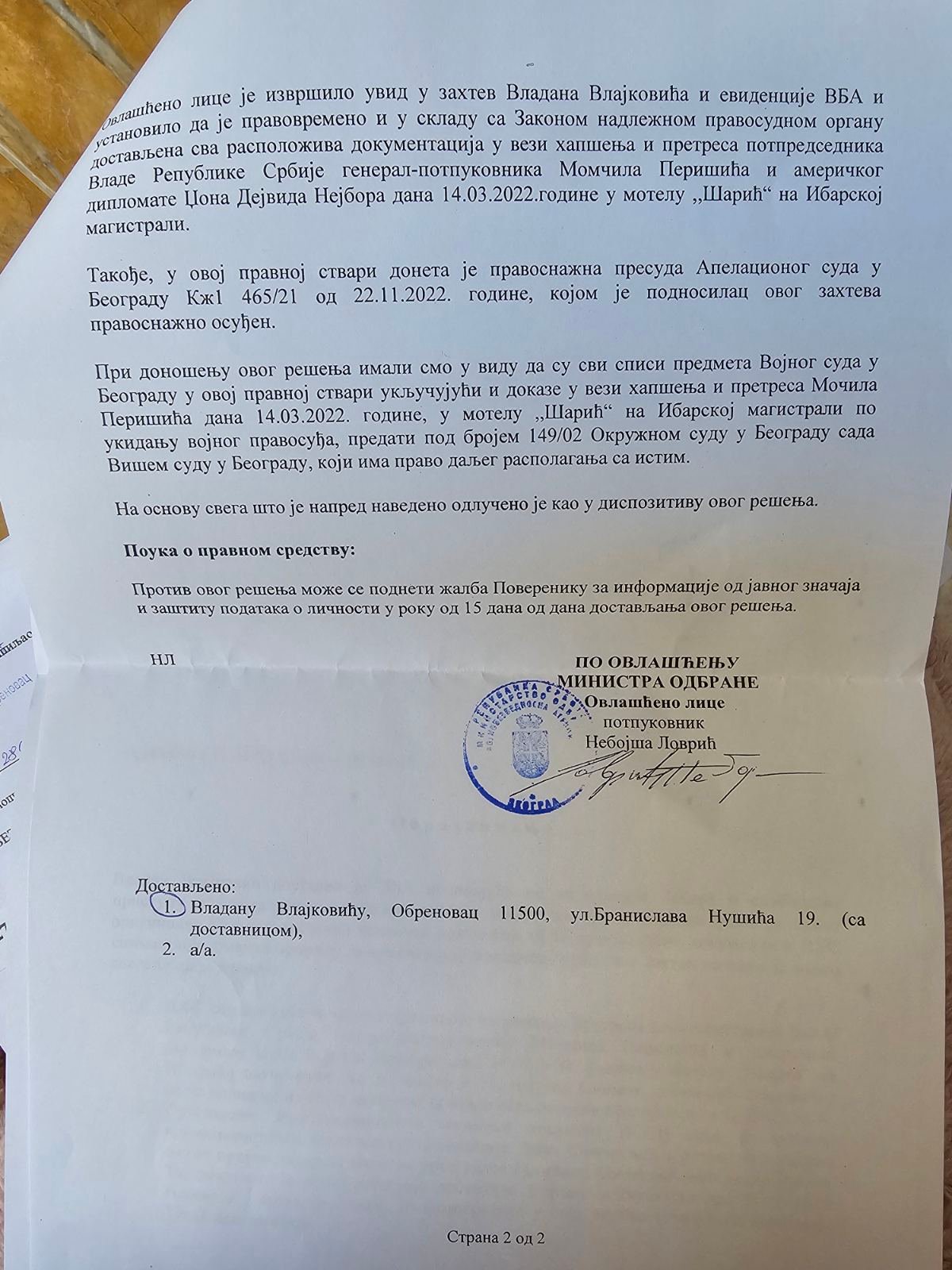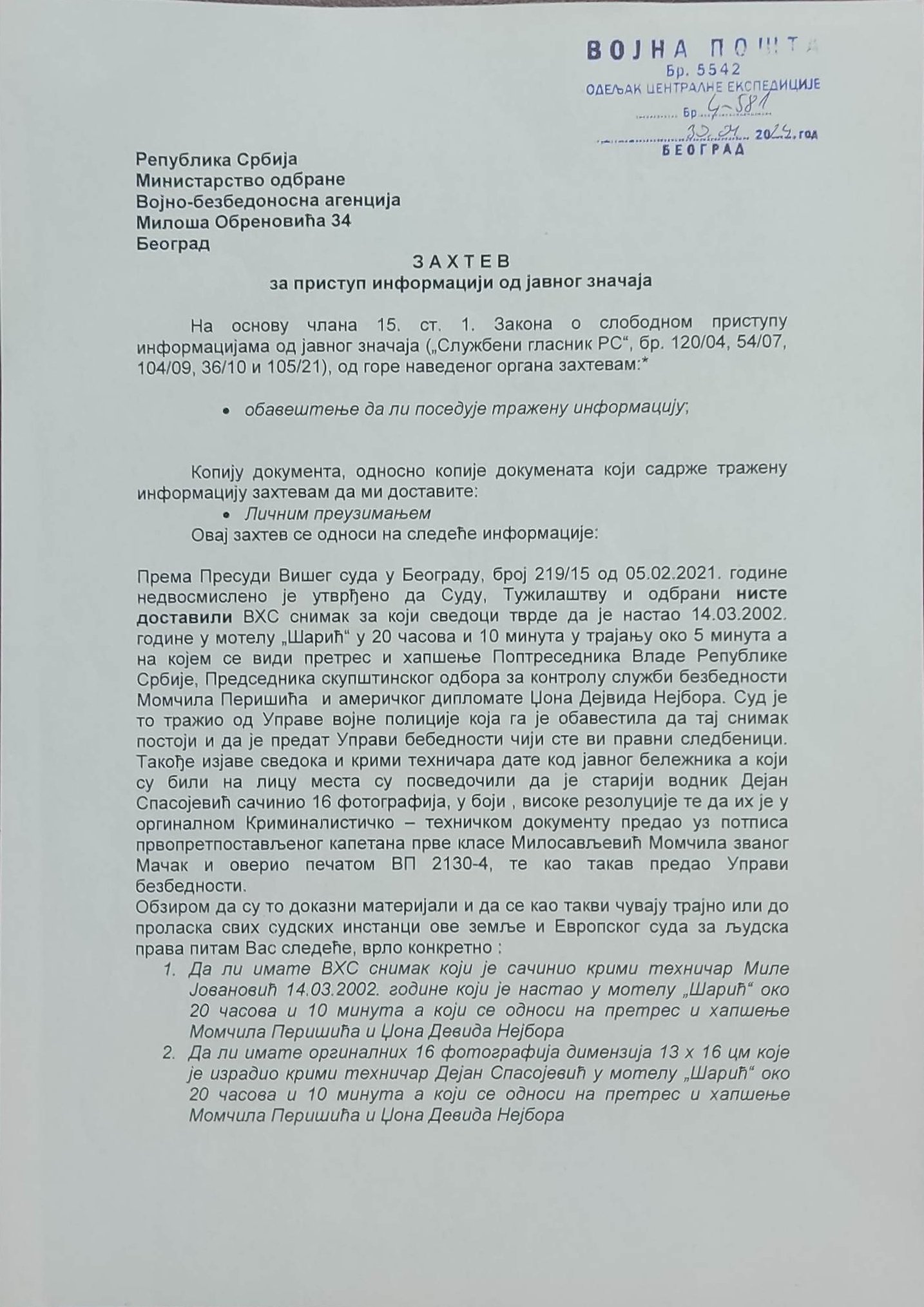 - Perisic pismo Jimu presretnuta depesa