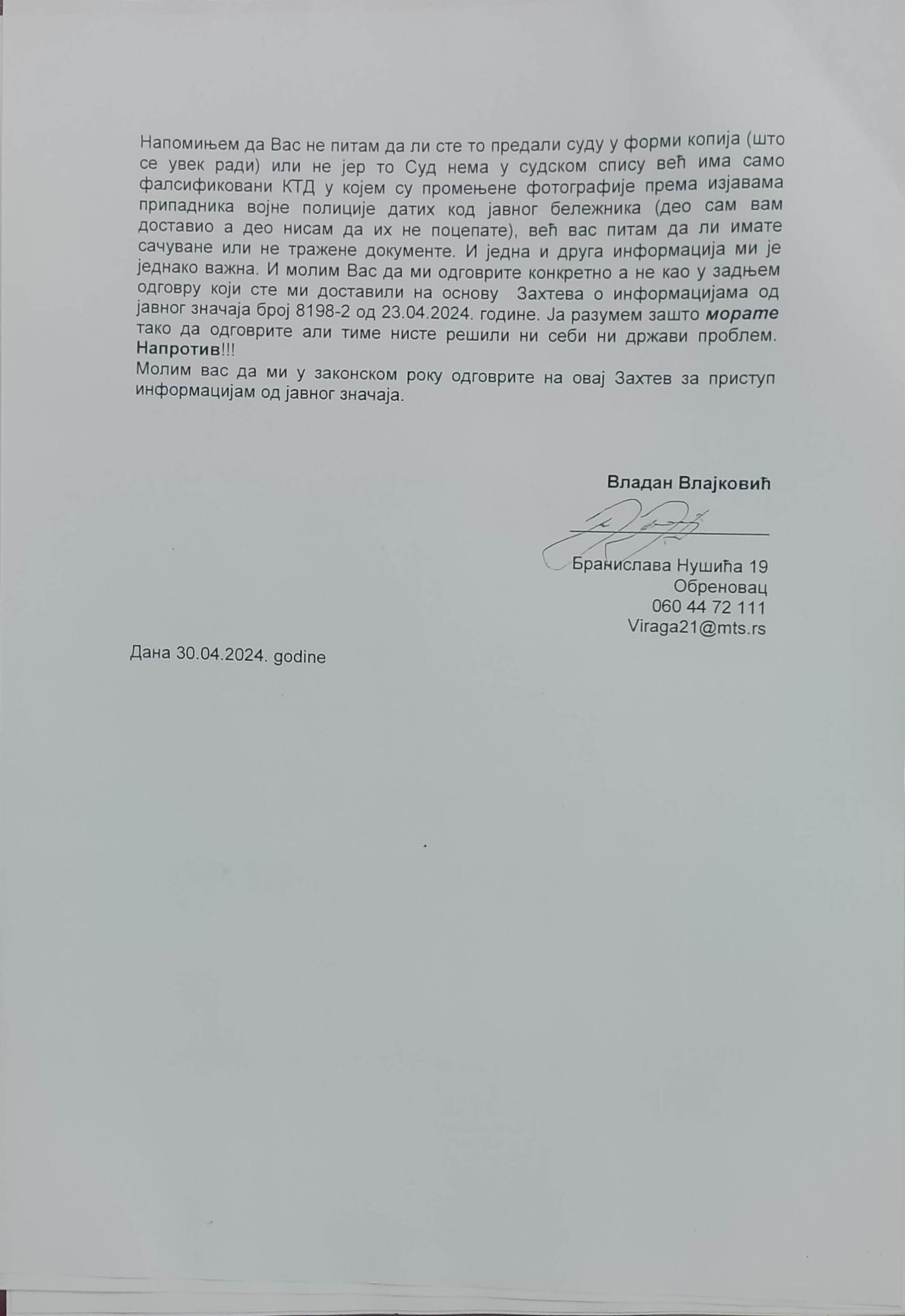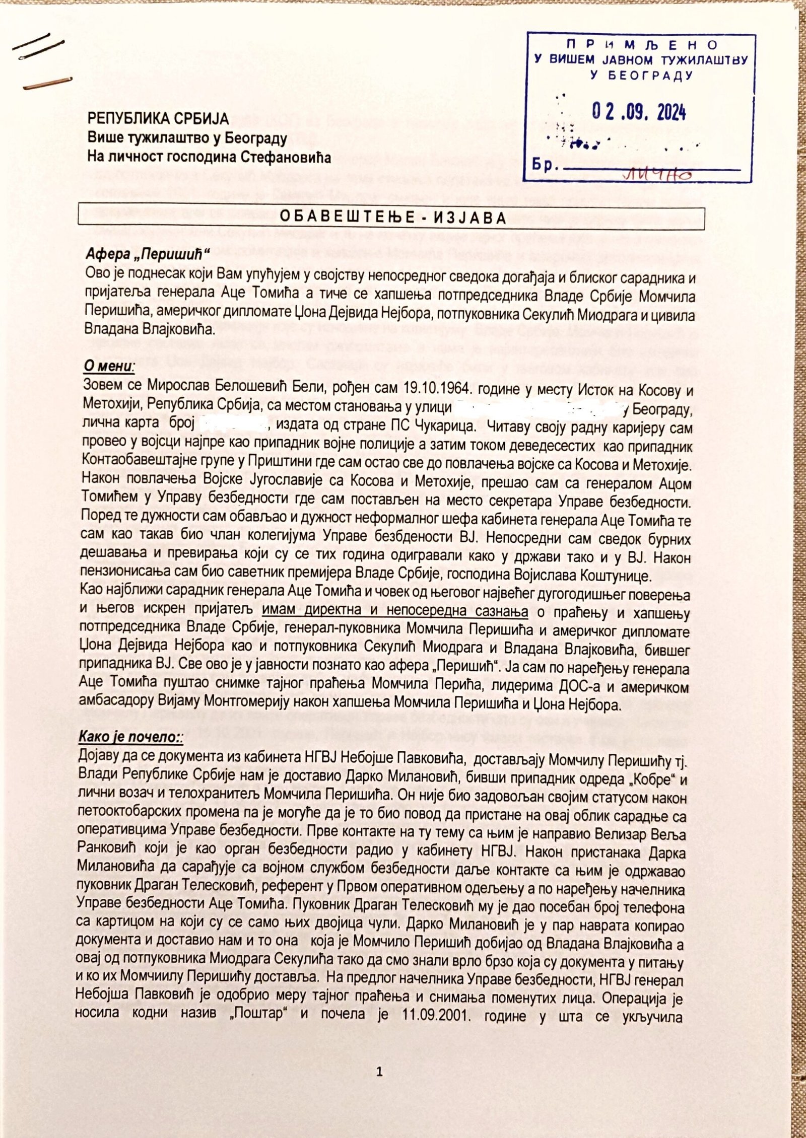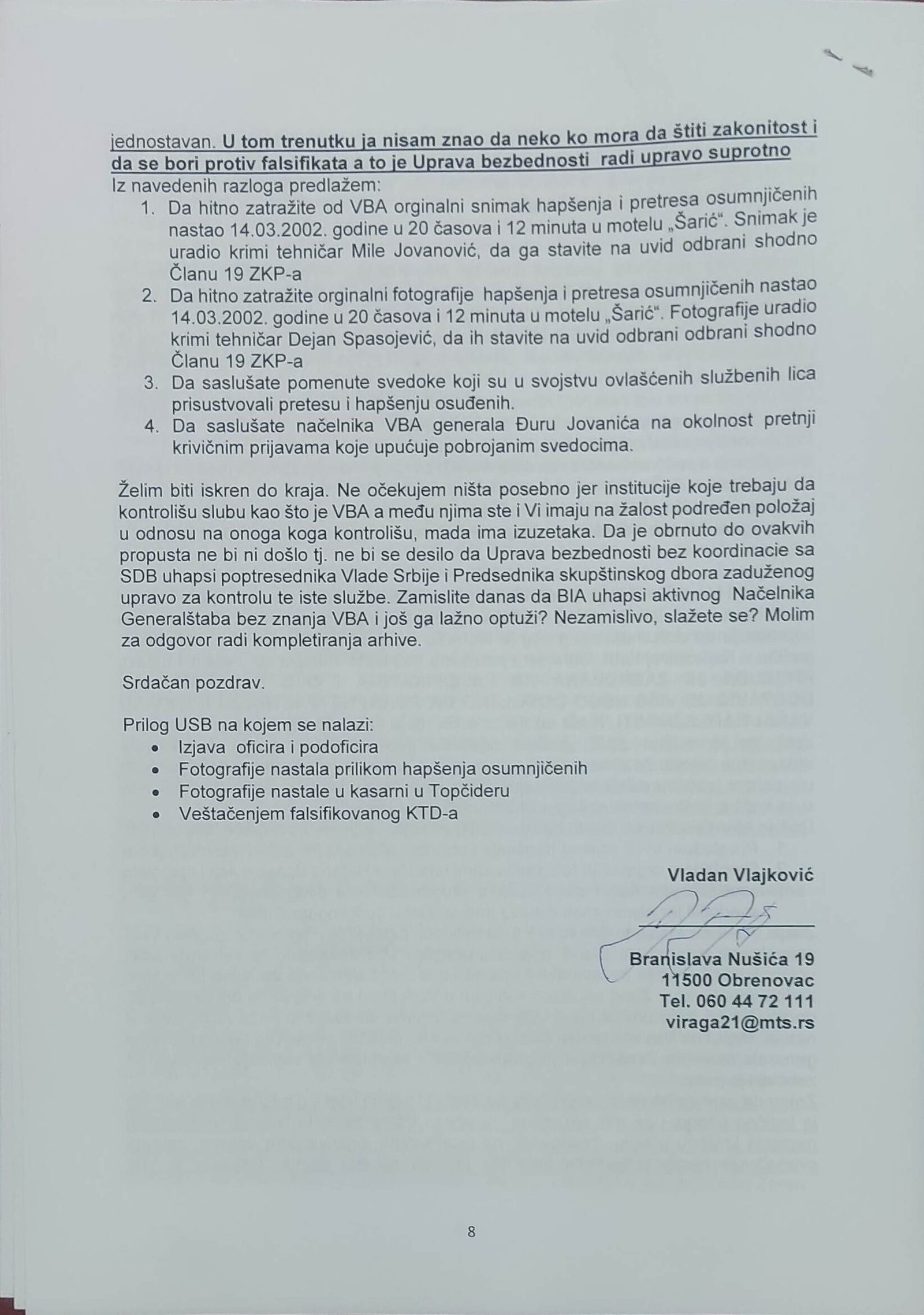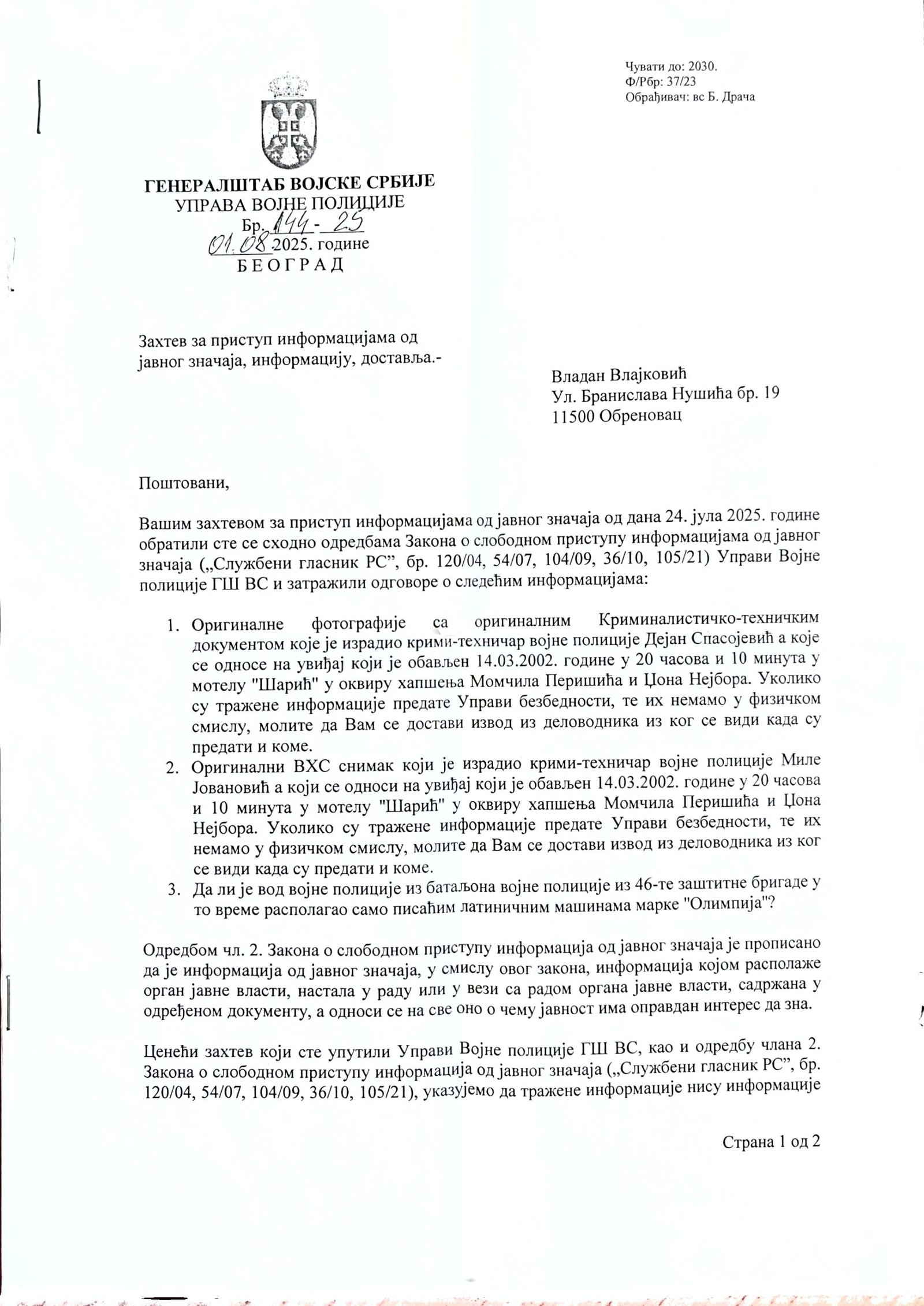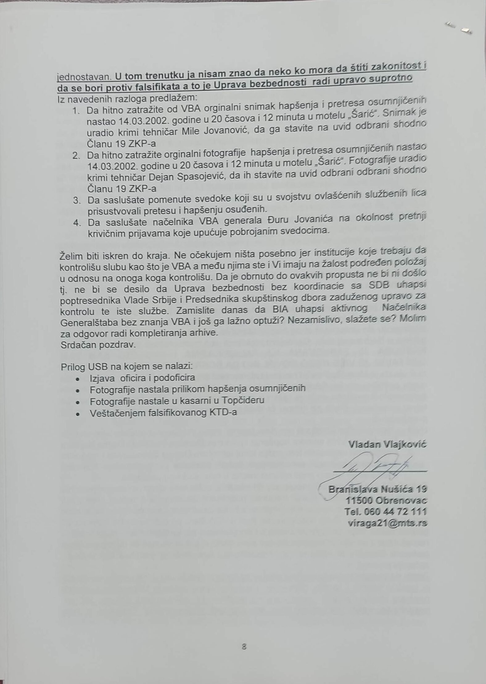 - Perisic pismo Jimu presretnuta depesa
