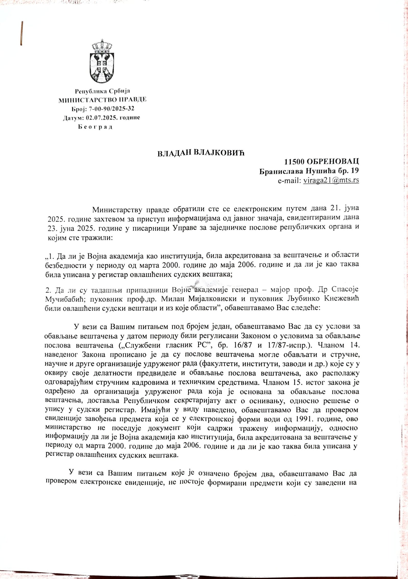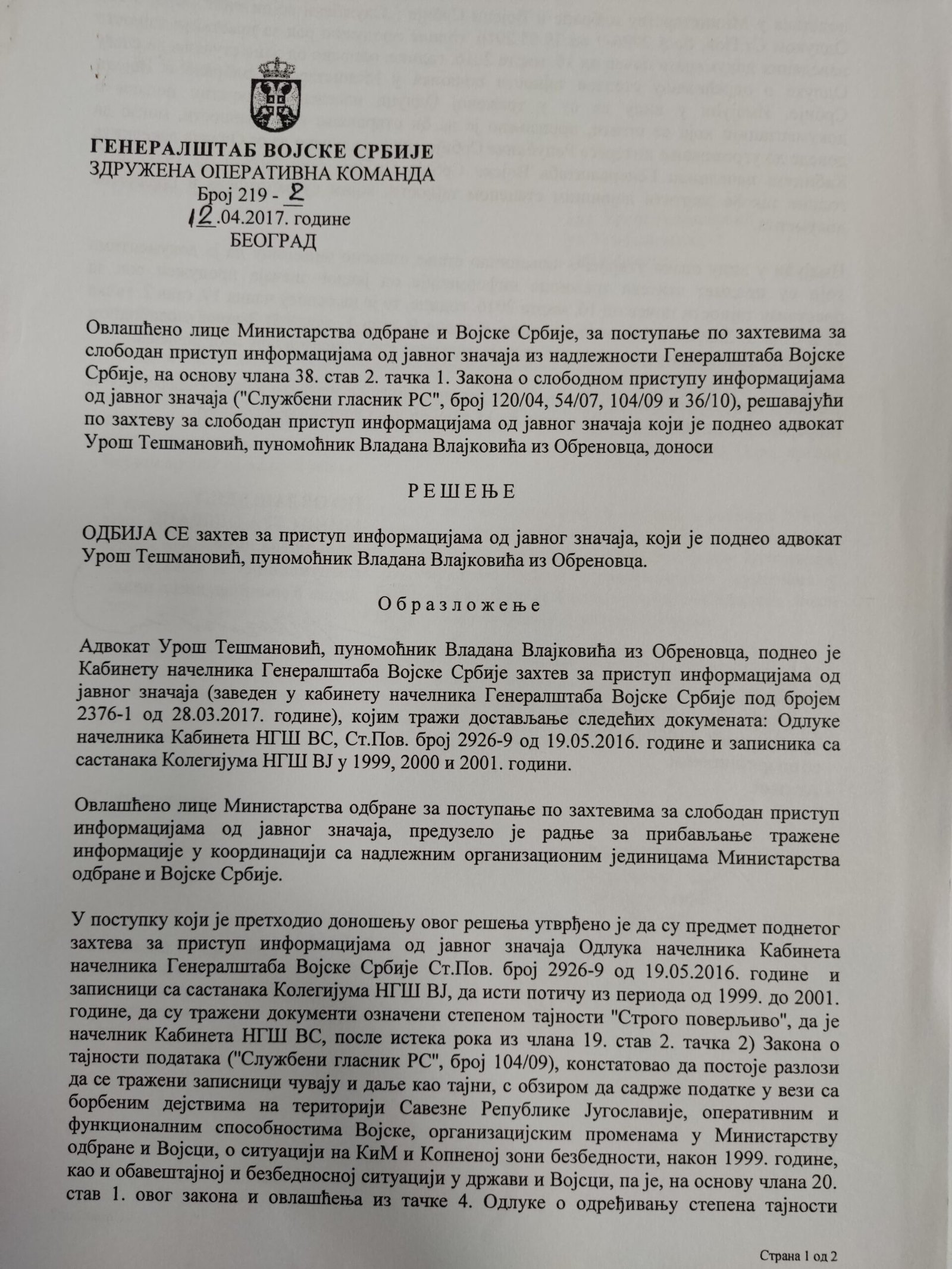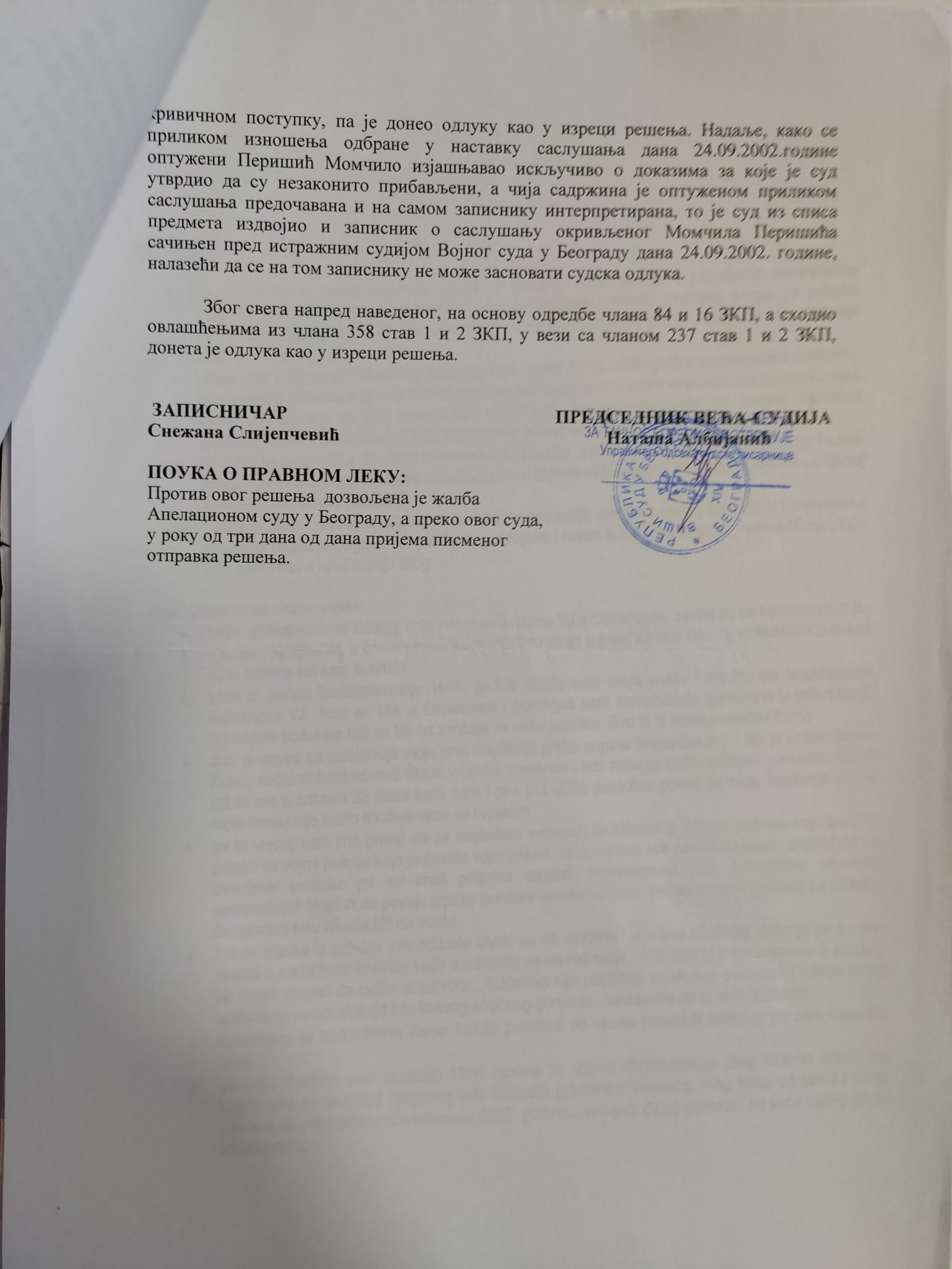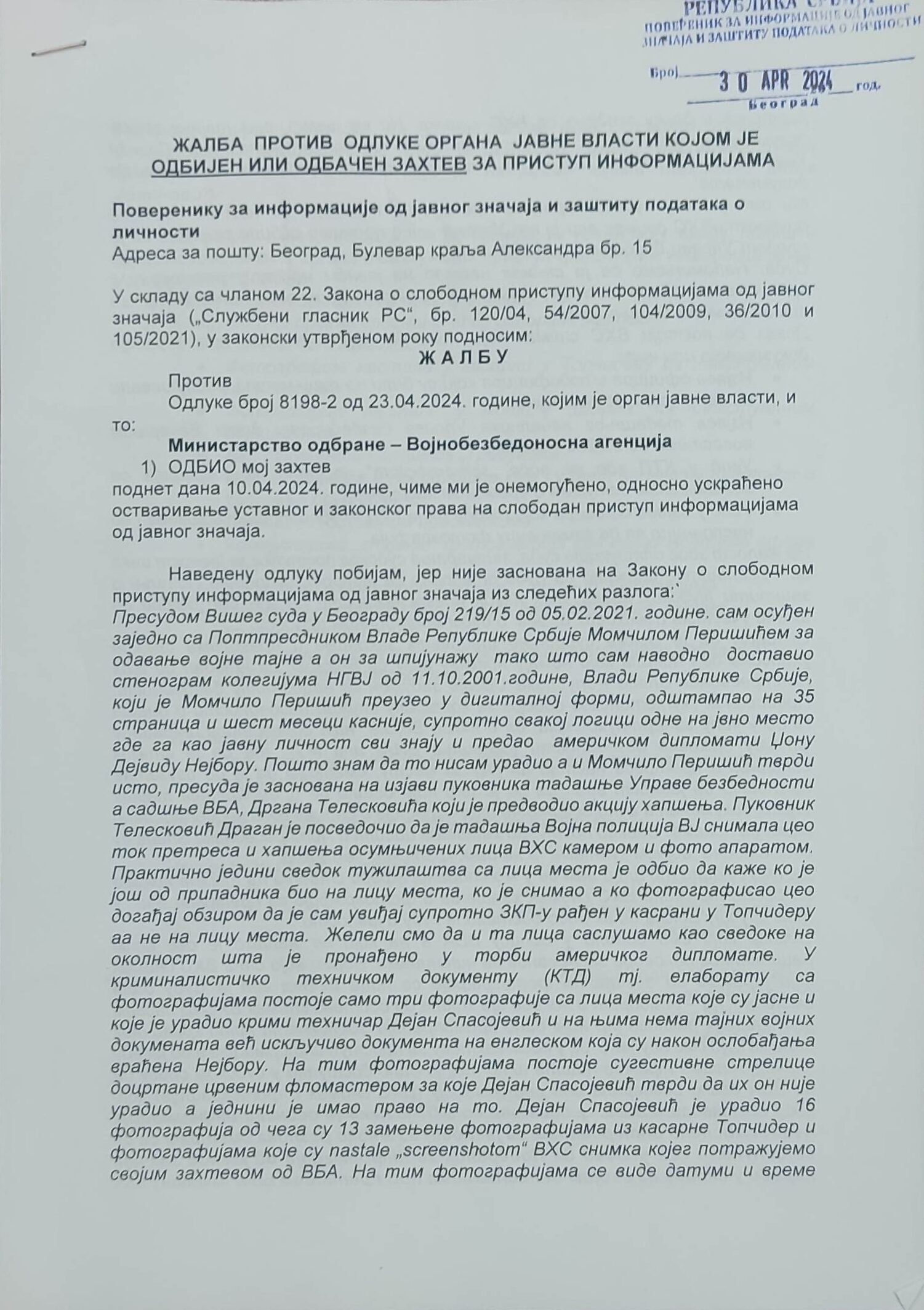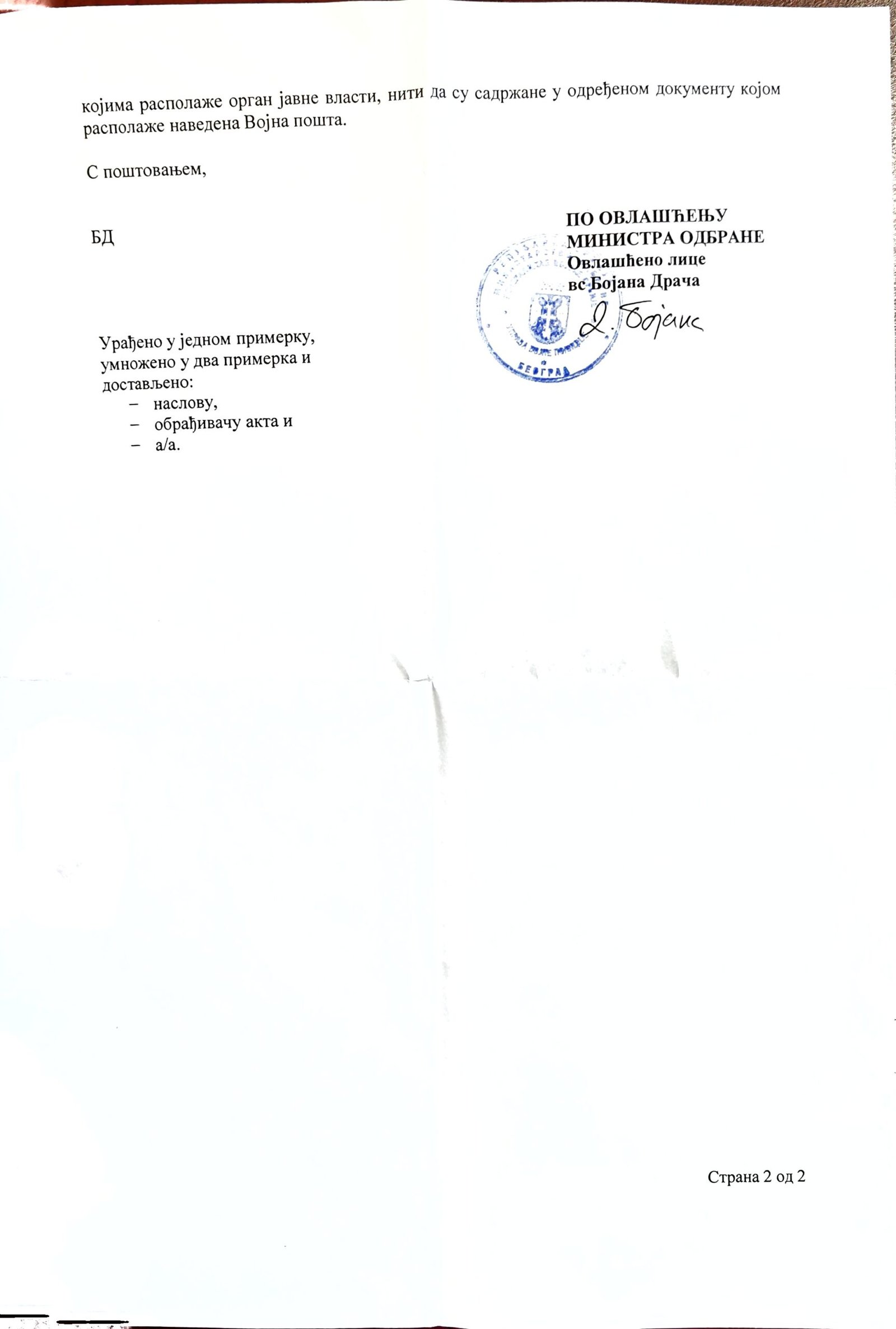 - Perisic pismo Jimu presretnuta depesa