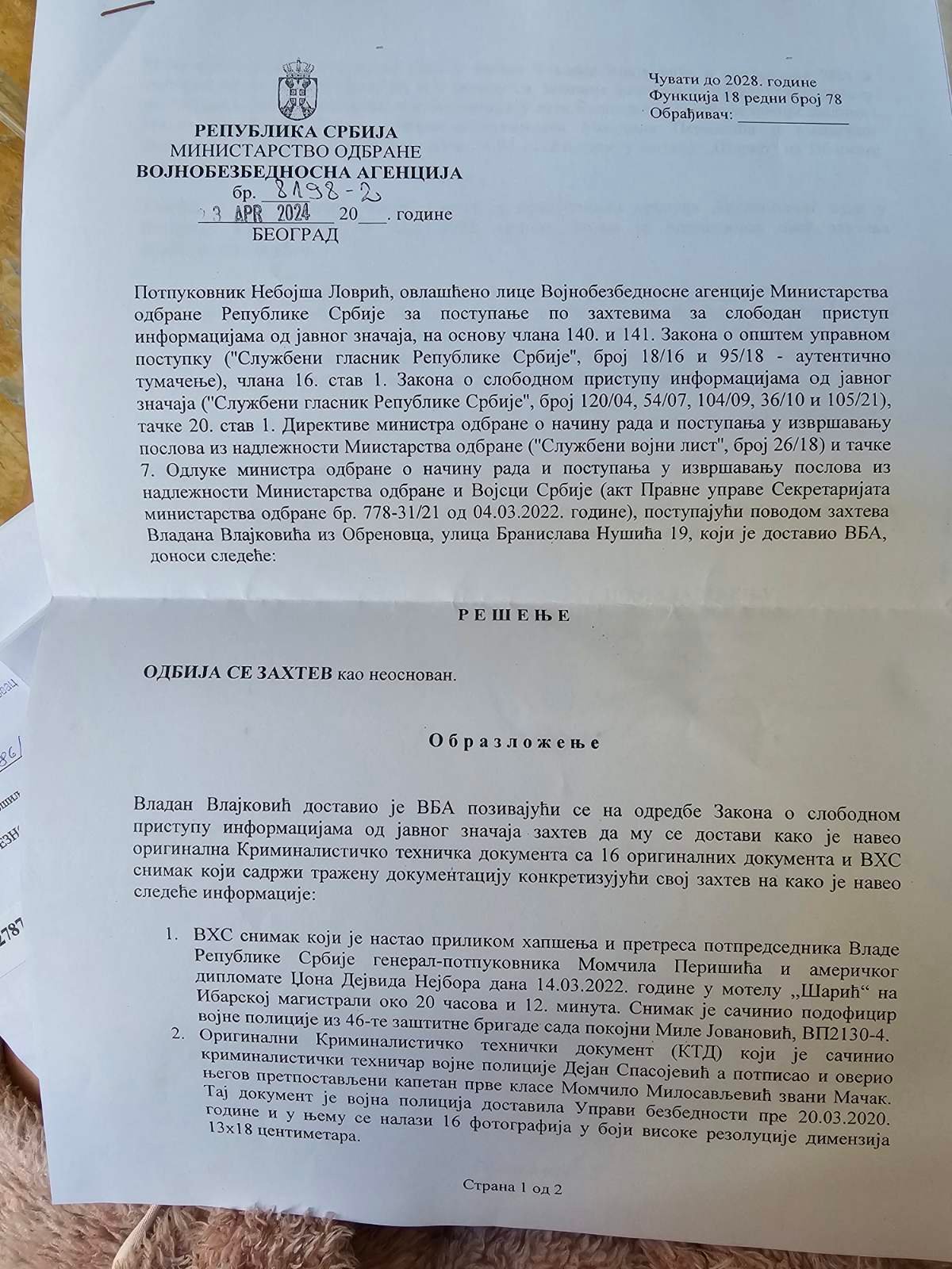 Fotografije i Kriminalističko-tehničkog dokumenta (KTD-a)