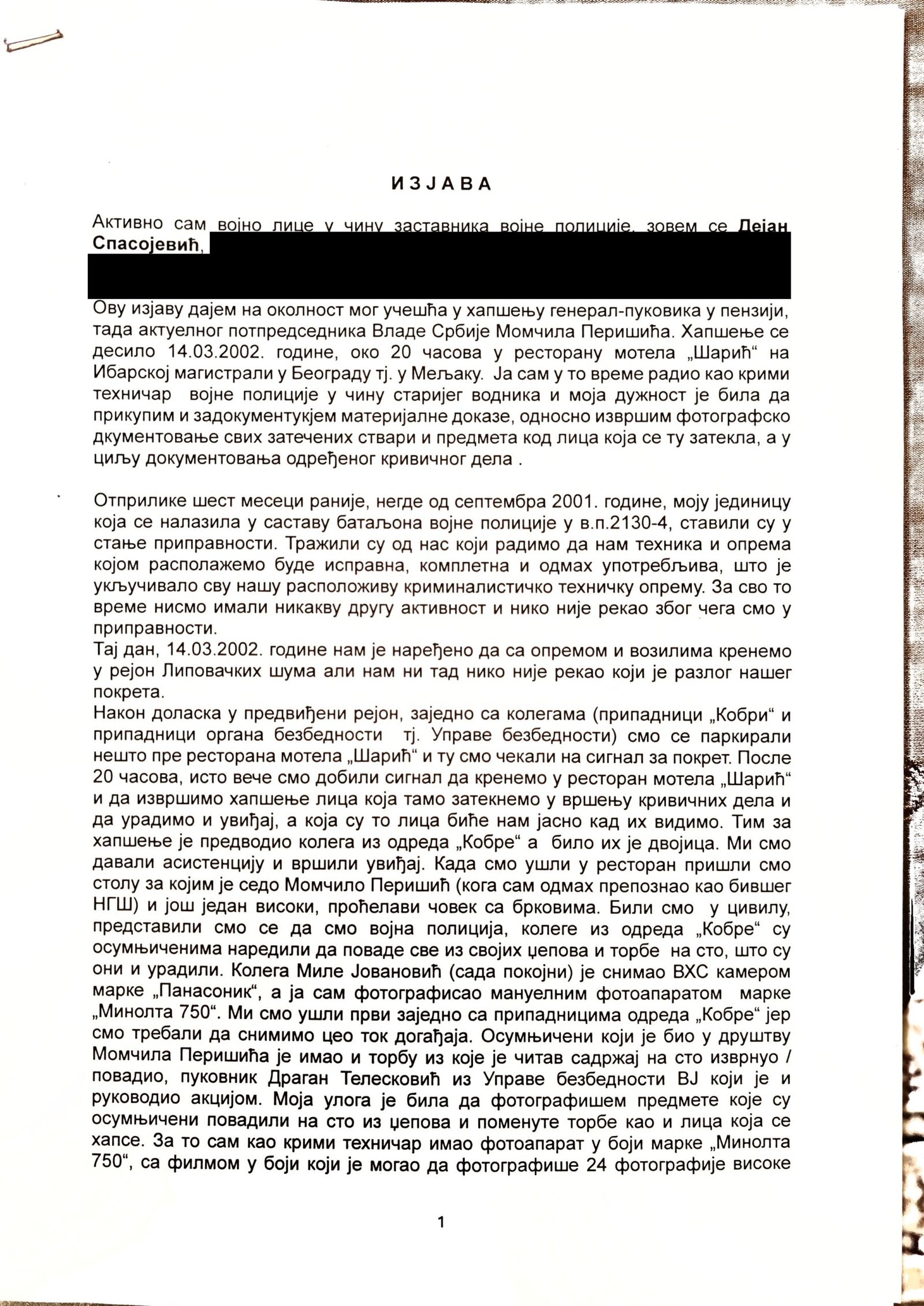 Fotografije skidani sa kamere - podoficir Mile Jovanović